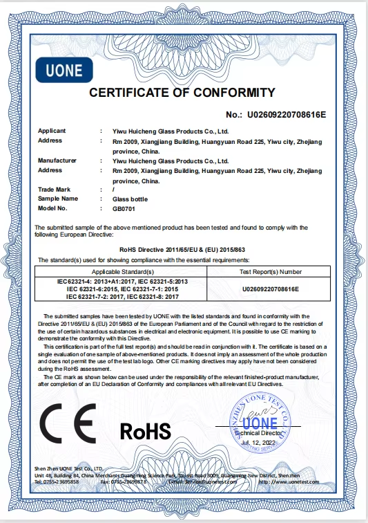 HUICHENG GLASS PRODUCTS CO., LTD(H&C PACKAGING CO., LTD.) is an international export company which includes designing, production, sales and trading. Our international sales office and showroom is located in Yiwu city of Zhejiang Province which is one of few most developed provinces in China. Our production factory covers 20,000 square meters. We specialize in all kinds of perfume bottles, roll on bottles, essential oil bottles, dropper bottles, cream jars, nail polish bottles, screw neck bottles, crimp neck bottles, pharmaceutical bottles, craft bottles, auto-sampler vials, tester bottles and accessories. Since establishment, HUICHENG company is devoted to become the most professional exporter of glass bottles of China. All of our bottles are made by auto-machines. Quality is very stable and size is very accurate. Meanwhile, we aim at providing clients with one-stop service. We help clients to make further processing service of bottles, such as printing, frosting, color-coating, UV, hot-stamping, and so on. We also can help clients to ship goods to the destinations you appoint. We declare positively: >>Right quality ensured. Any quality problem will be treated seriously. >>Safe package ensured. Any bottles destroyed caused by package will be compensated. >>Efficient service ensured. Any inquiry or complaint will be responded within 24 hours. TEL.: 0086-579-85170906 FAX.: 0086-579-85172124