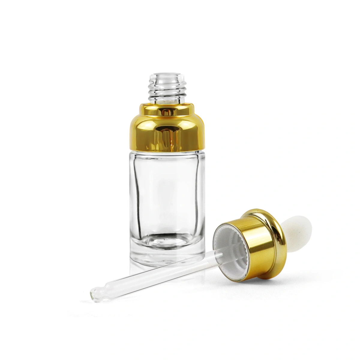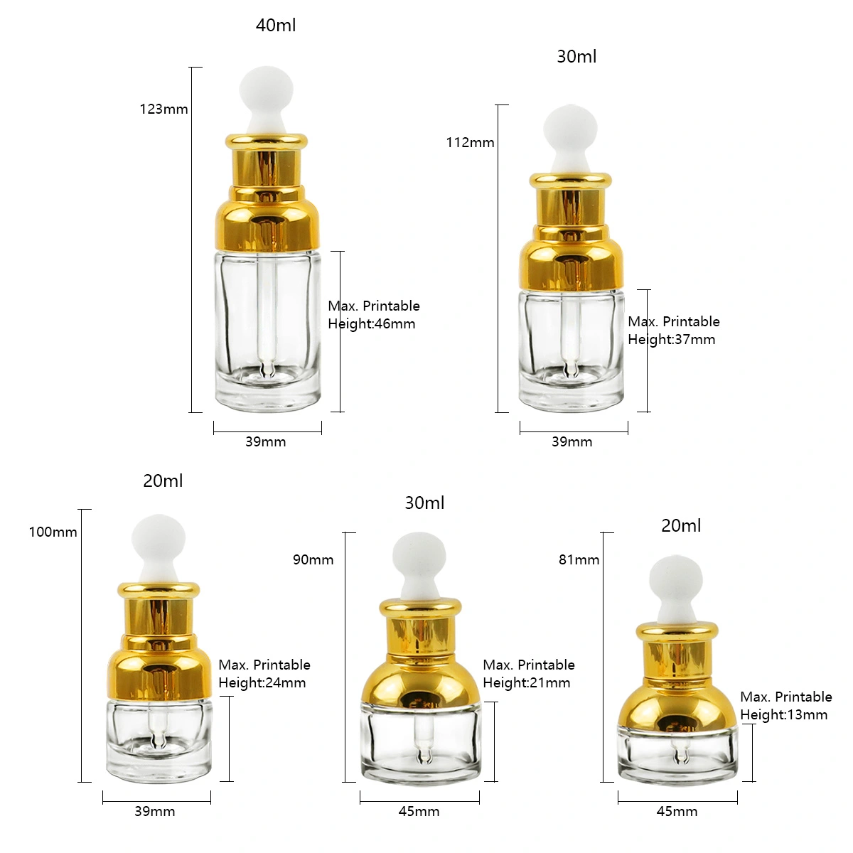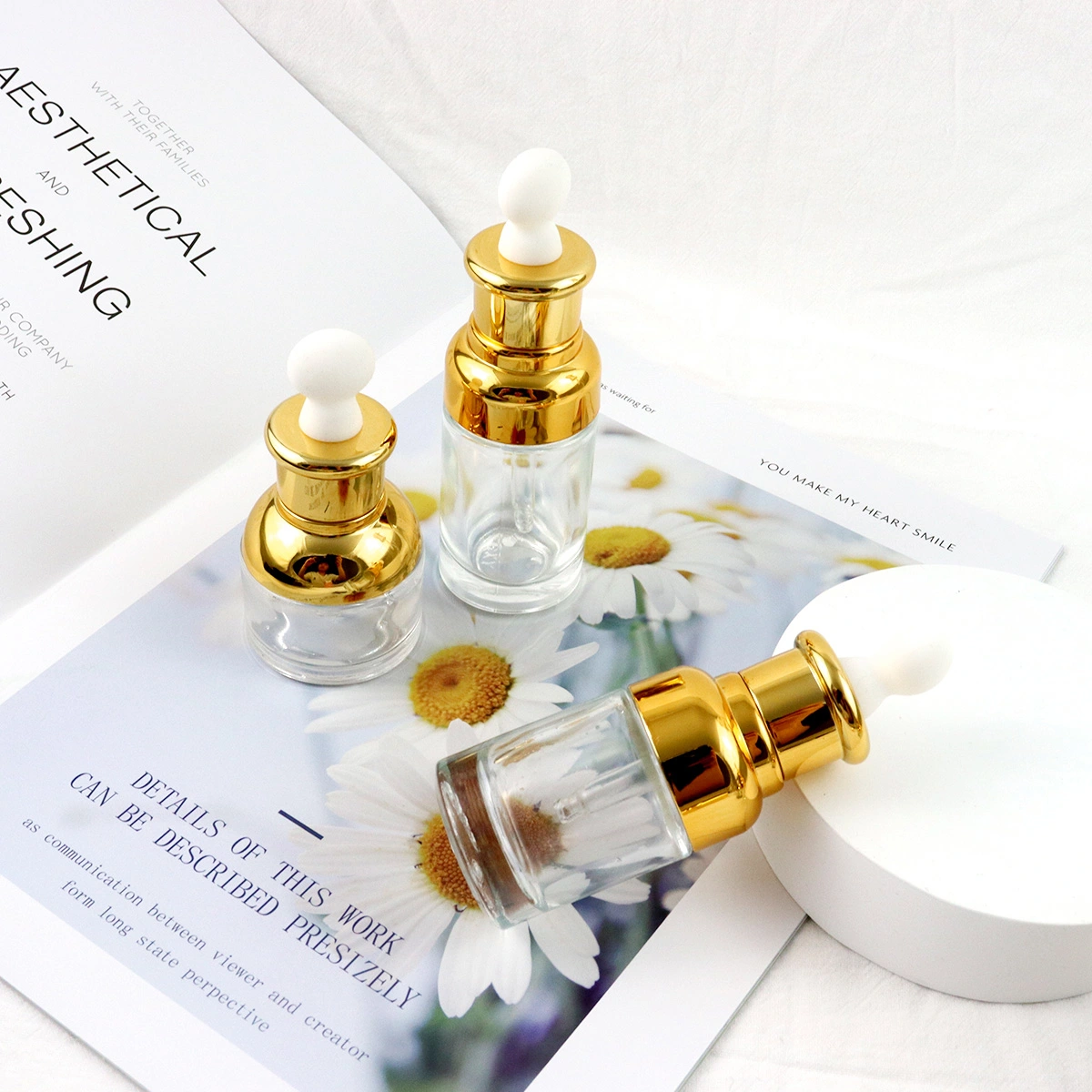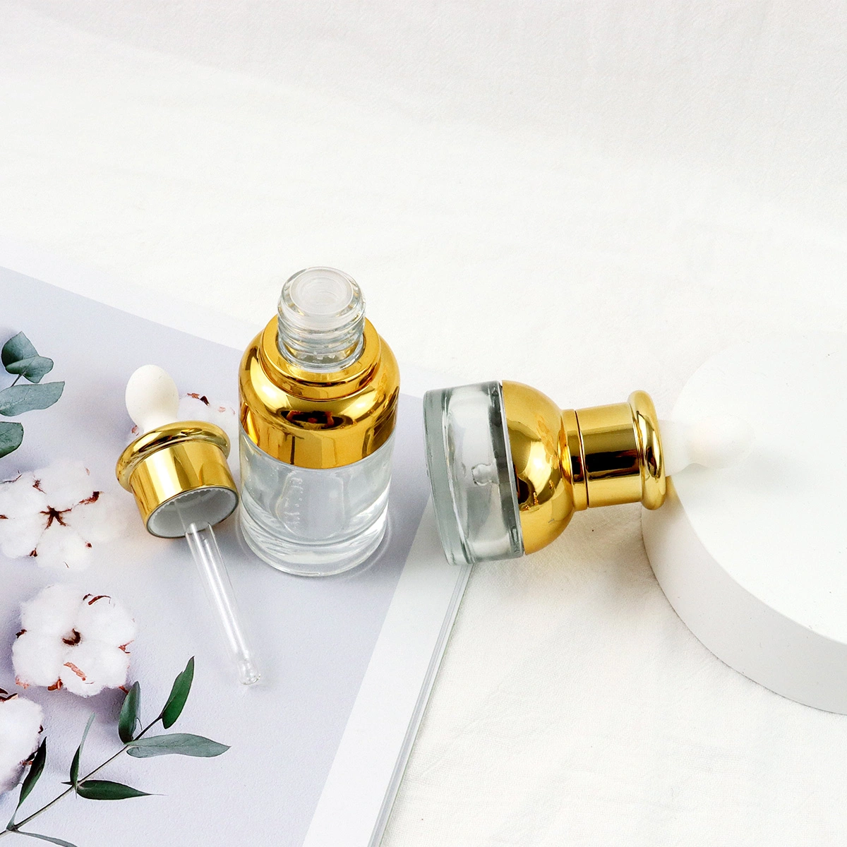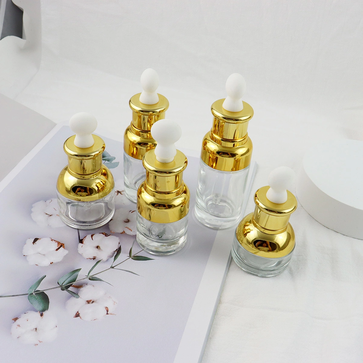 New Design 20ml 30ml 40ml Clear Round Cosmetic Essential Oil Serum Glass Press Pump Dropper Bottle With White Dropper