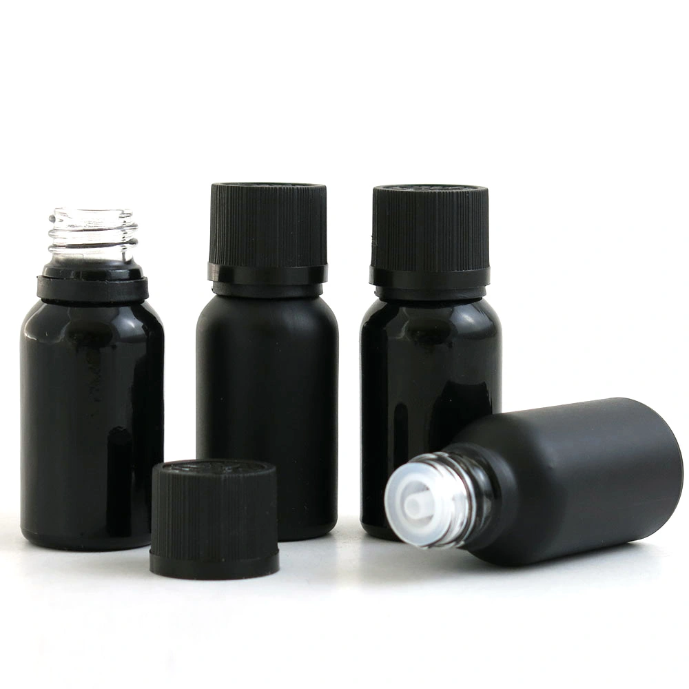 Factory Direct Sales Essential Oil Glass Bottle Black Childproof Plastic Screw Cap Hot sale Products Black White Cap