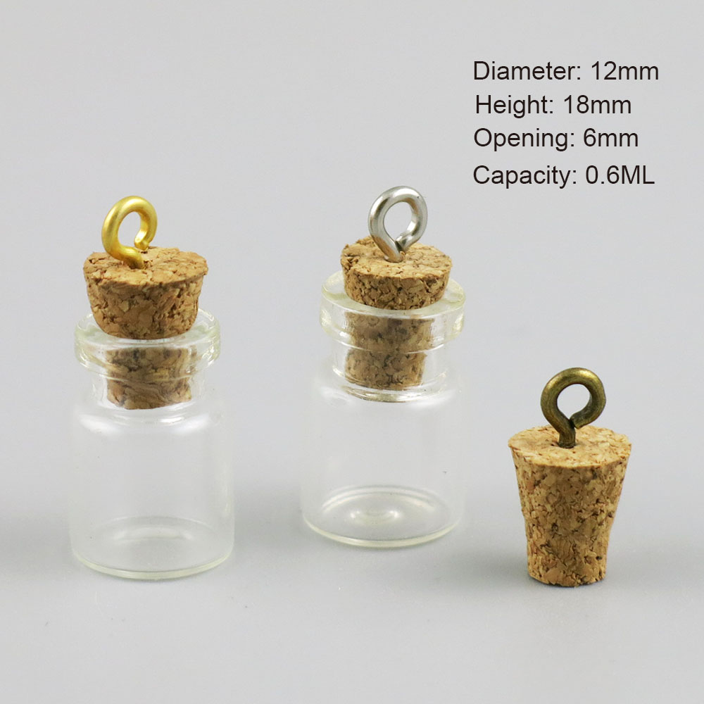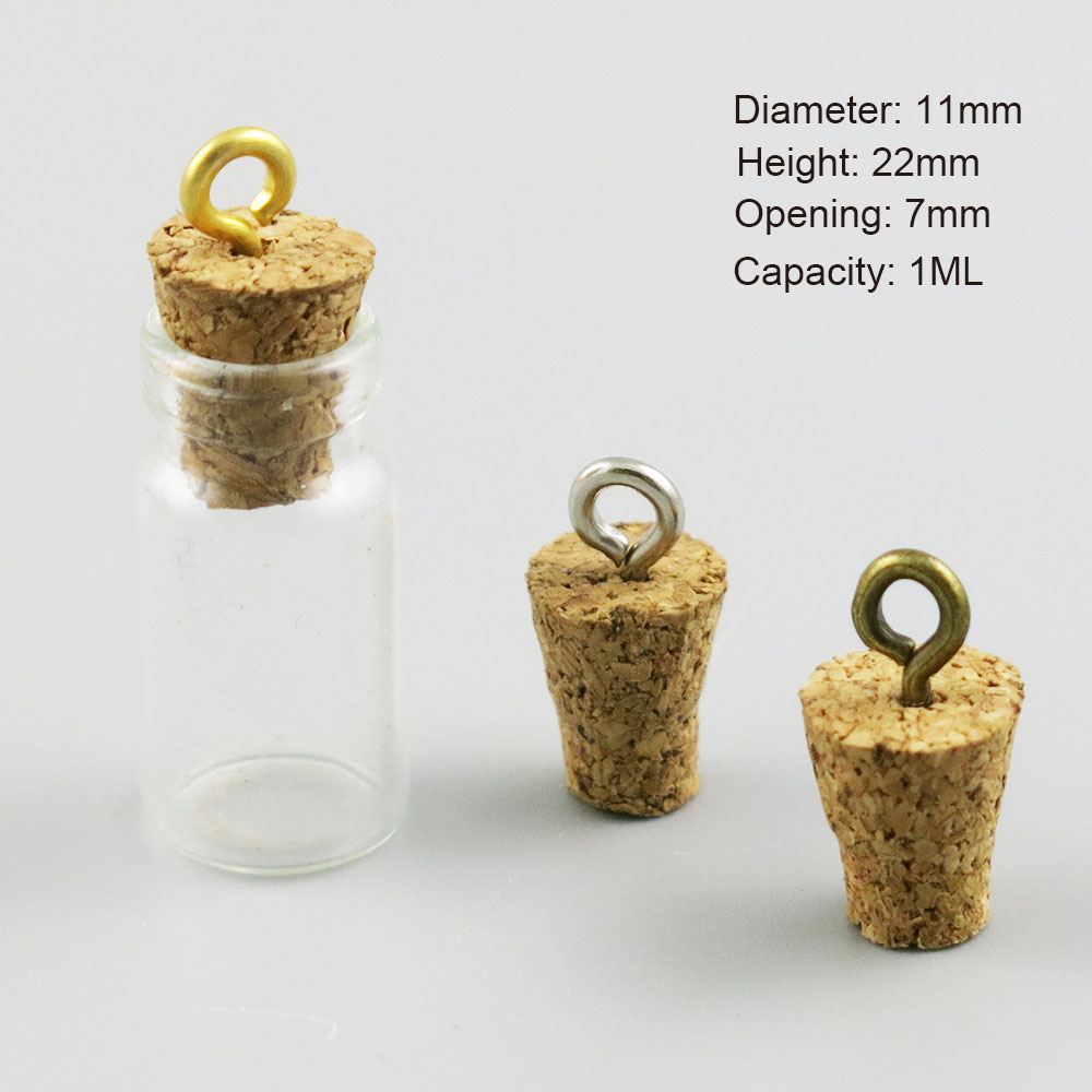 0.6ML 1ML Travel Mini Glass Pendant with eye hook Glass corked stopper bottles Sample Glass Bottle With Cork