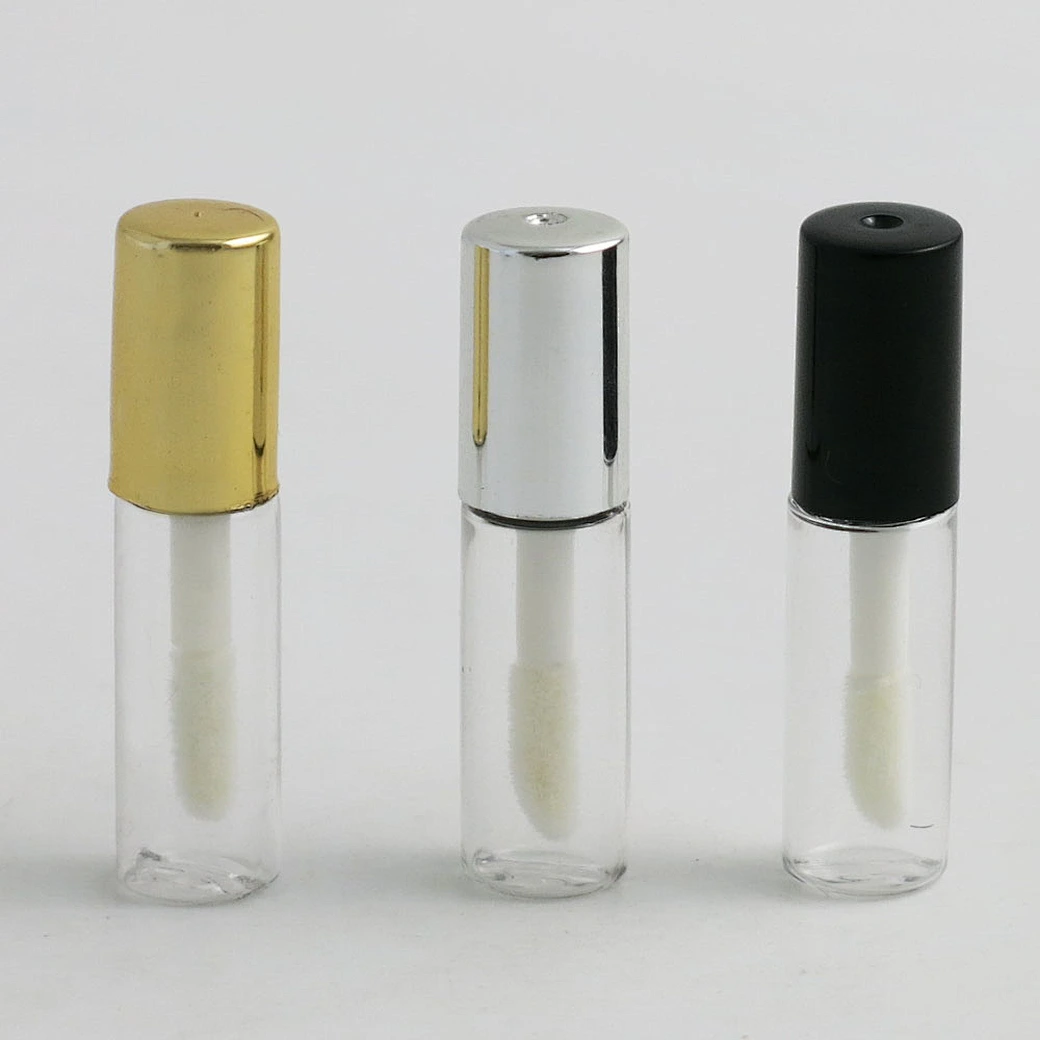 1.2ml Empty Plastic Mini Lip Gloss Tube, Sample Top Grade Lip Cream Container, DIY Lip Cosmetic Packaging Tubes With Black Gold Silver lids