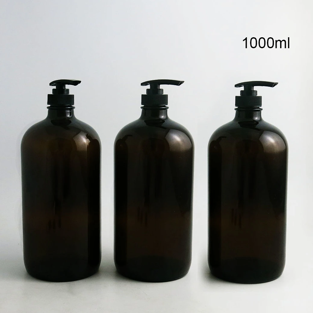 1000ml Big Refillable Boston Round Glass Bottle with Plastic Sprayer Cap Dark Amber Glass Containers Packaging