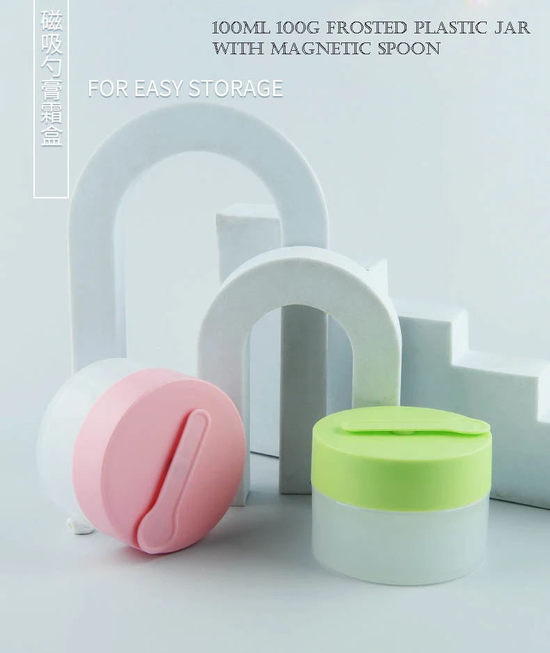 100g Green Pink Flip Lid PP Material With Spoon Skin Care Packaging Cosmetic Cream Empty Plastic Jar