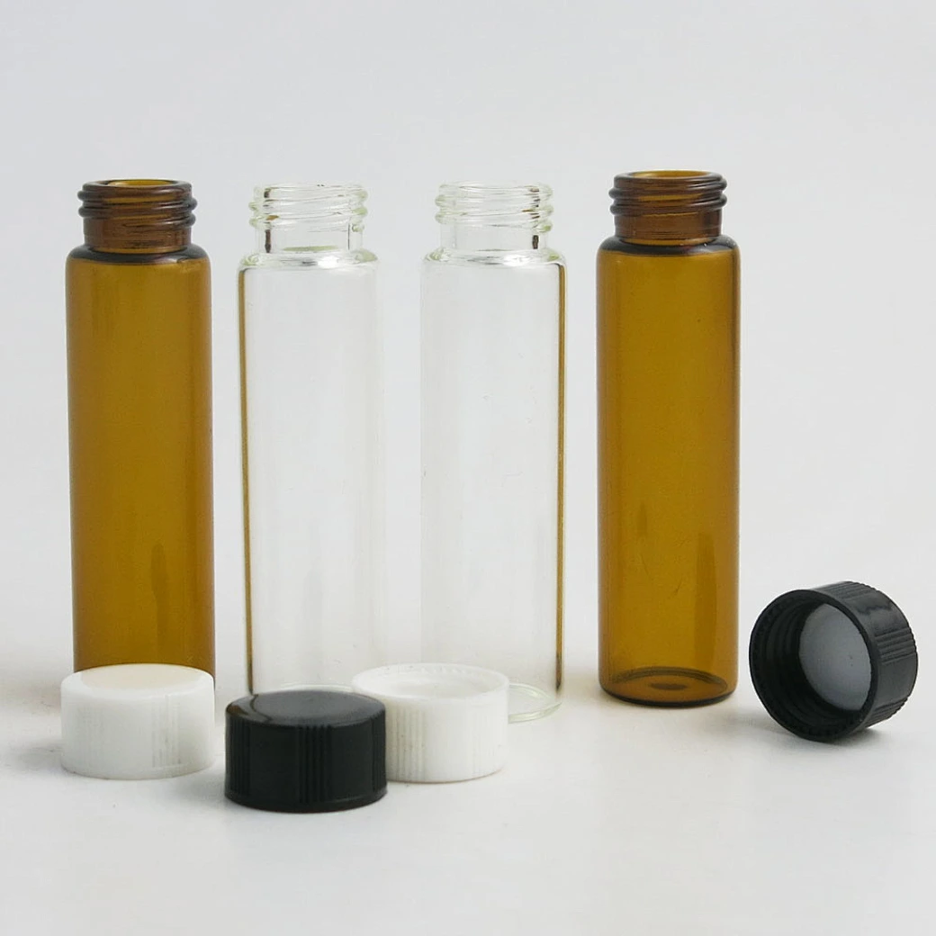 10ml Clear amber glass lotion bottles essential oil perfume vials cream jar cosmetic packaging container with black&white screw top cap