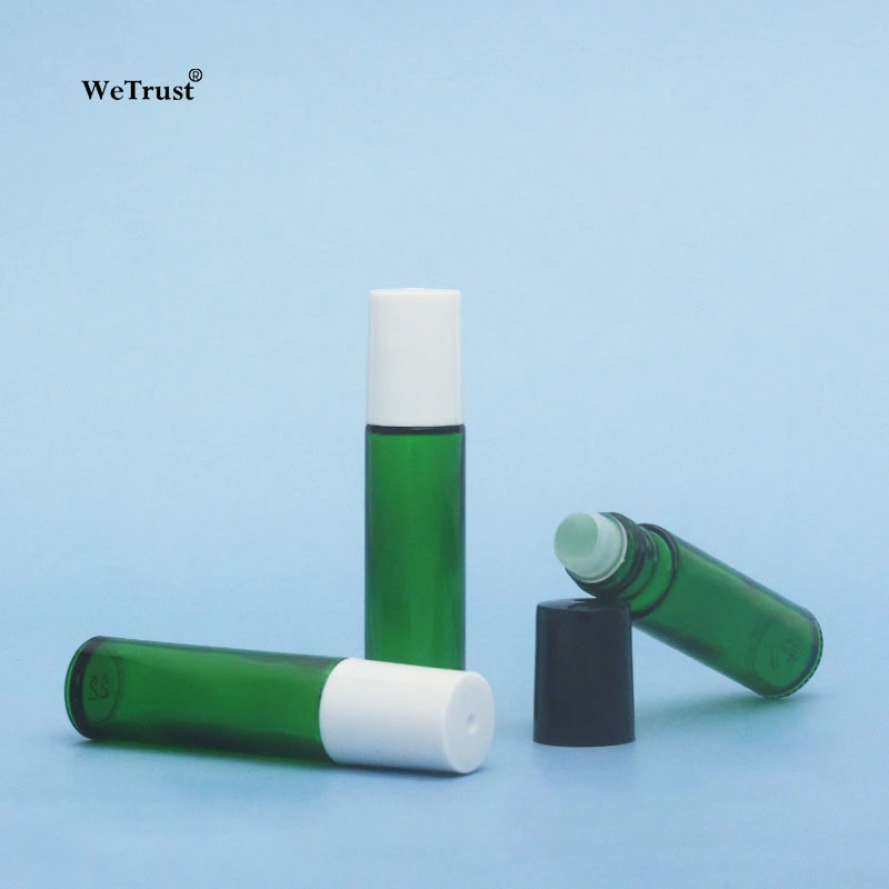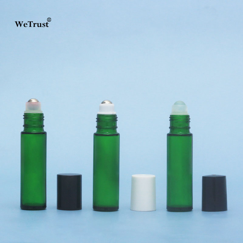 10ml green clear frosted glass roller bottle roll-on fragrance essential oil vial black screw cap personal care