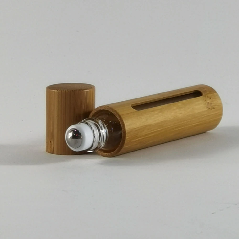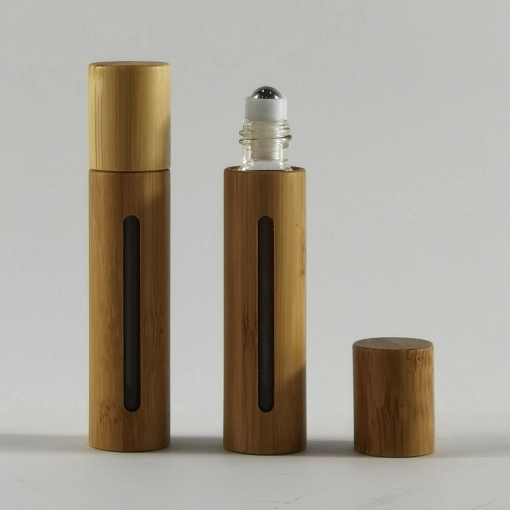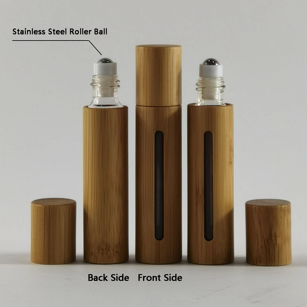 10ML Roll On Cosmetic Packaging Empty Glass Bamboo Essential Oil Roller Ball Bottles Engraved And Printed