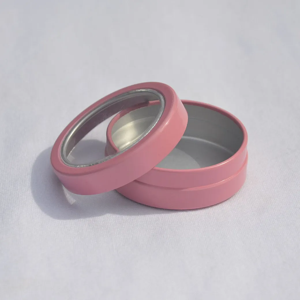15g ML Pink Round Tin with Transparent PET Window Two-Part Lid Compact Container for Balms/Cosmetics