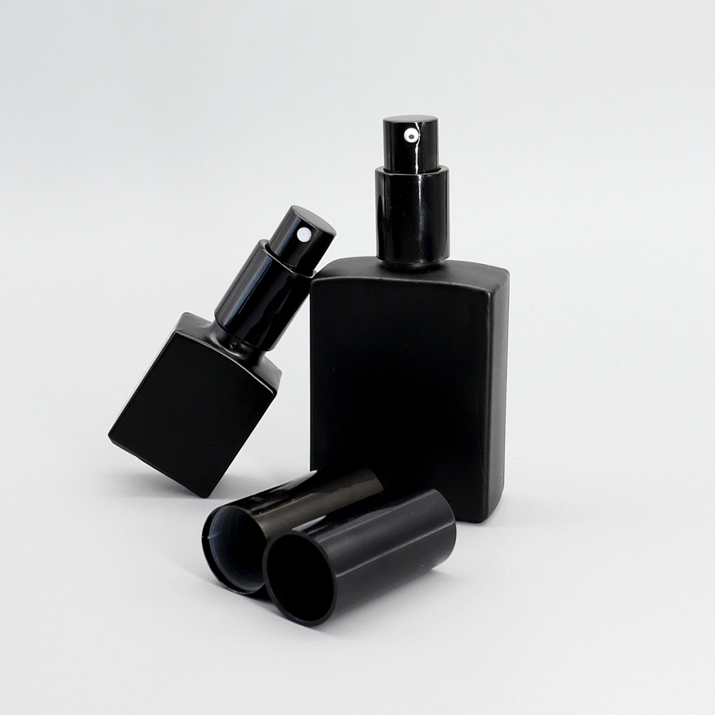 15ml 30ml 50ml 100ml square flat black glass pump bottle Rectangular pump Essential Oil Bottle Perfume Aromatherapy