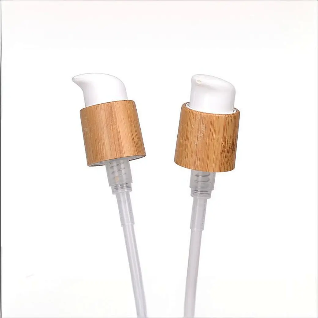 24-Thread Bamboo-Wood Cosmetic Pump Dispenser – 24/410 Beak-Style Lotion Pump with Left/Right Switch (OEM Available)
