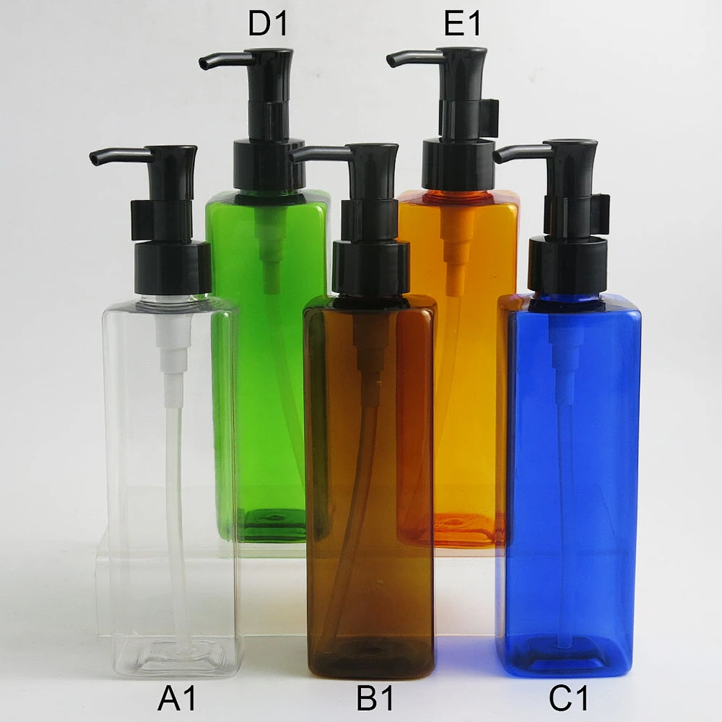 240ml Square Empty Essential oil PET Colorful Bottle With Black & White Oil Pump