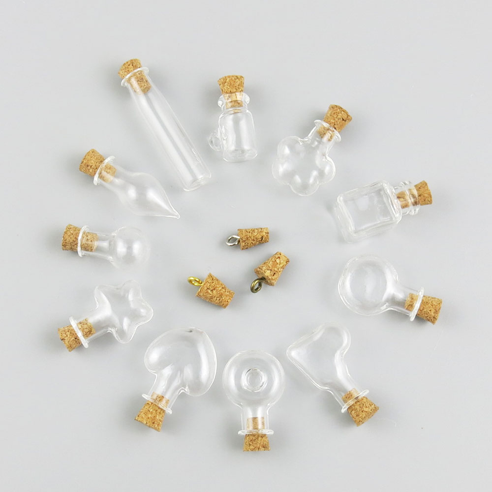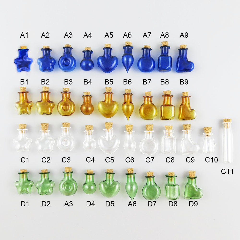 2ml Mini Transparent Amber Green Blue Glass Bottle With Cork Eye Hook Small Glass Vials With Cork Stopper Decorative Corked