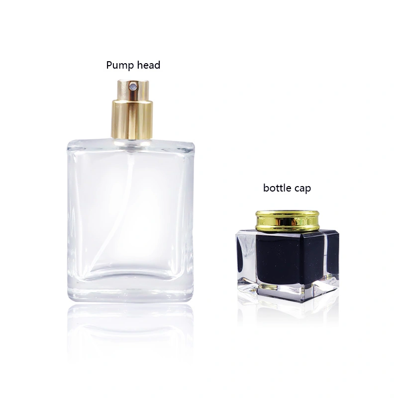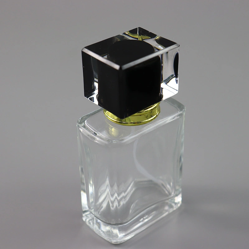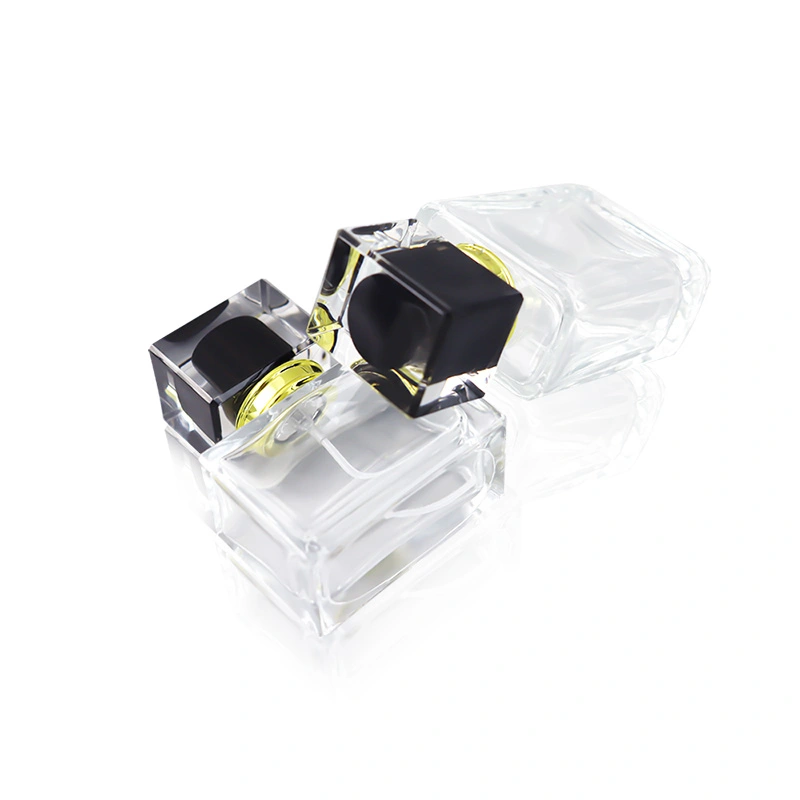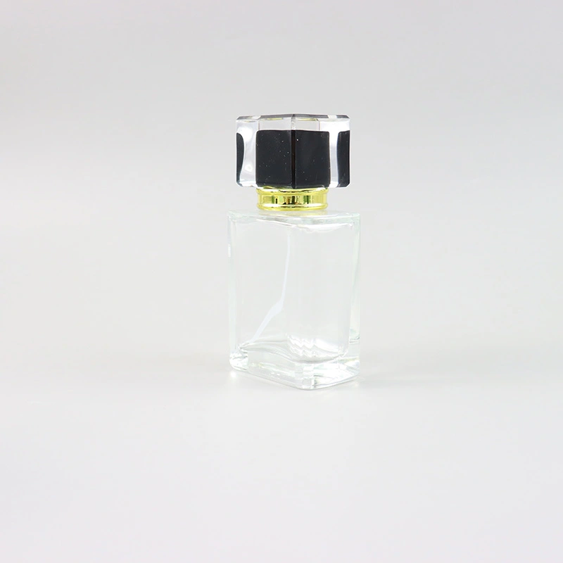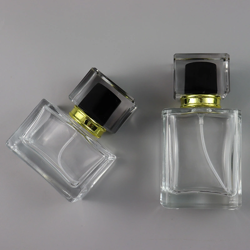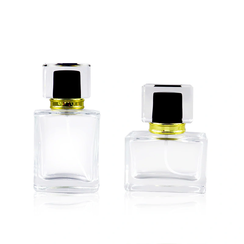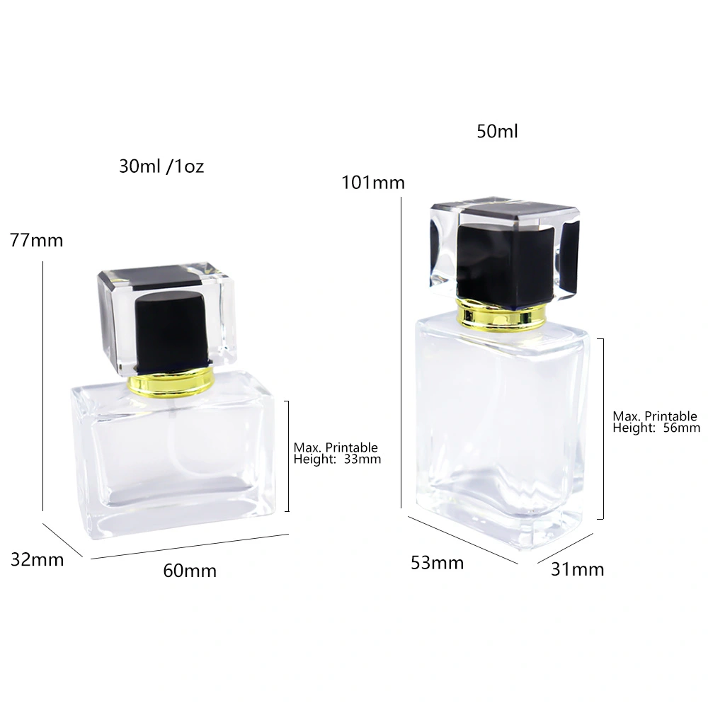 30mL 50mL Square Transparent Perfume Spray Bottle Luxury Glass Bottle with Clear Cap