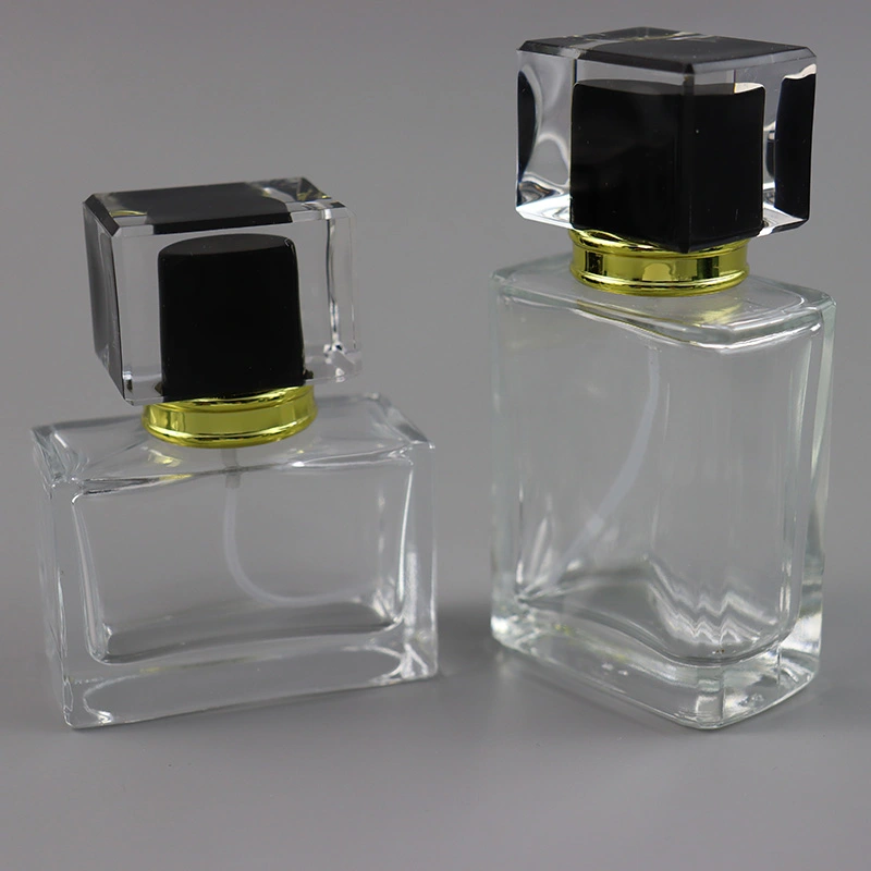 30mL 50mL Square Transparent Perfume Spray Bottle Luxury Glass Bottle with Clear Cap