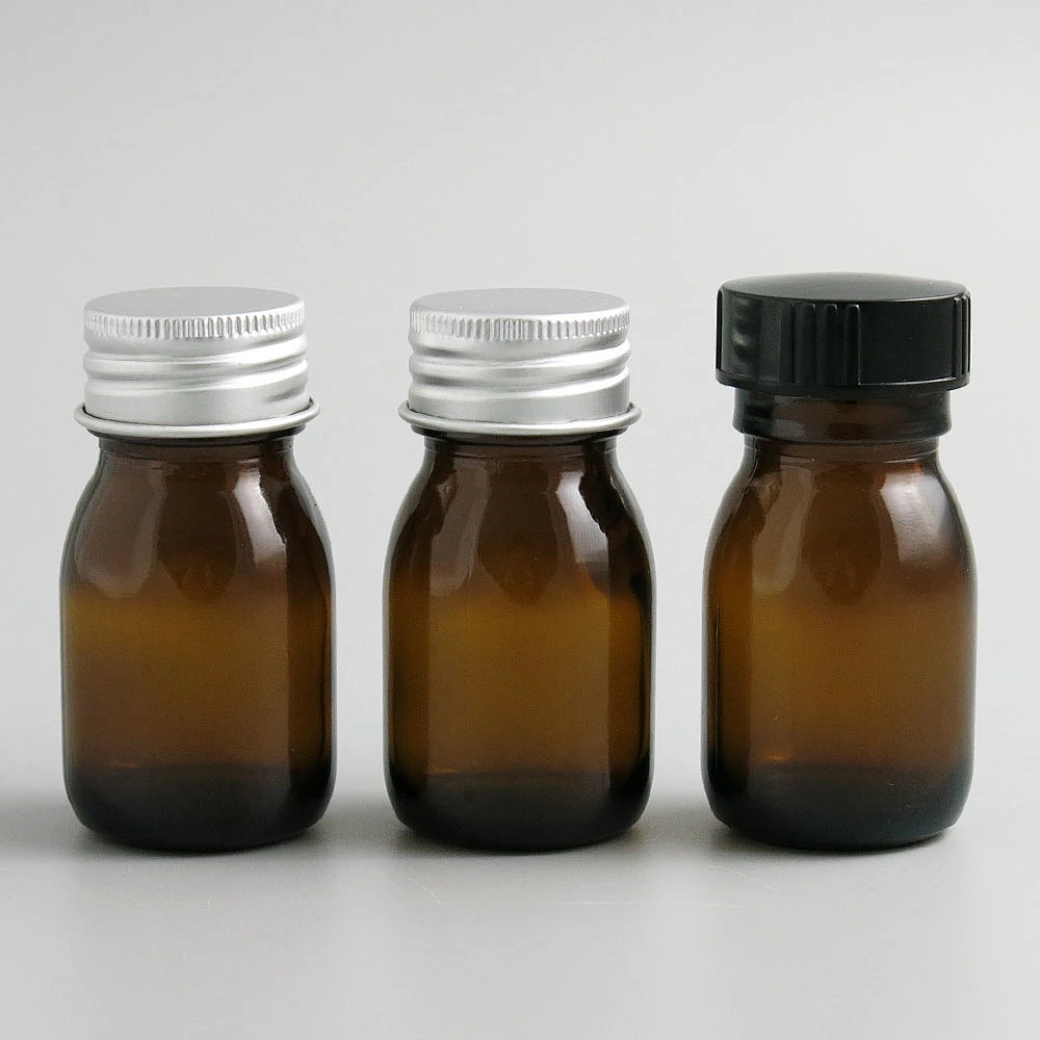 30ml Amber Small Portable Glass Bottle with Aluminum or Plastic Caps