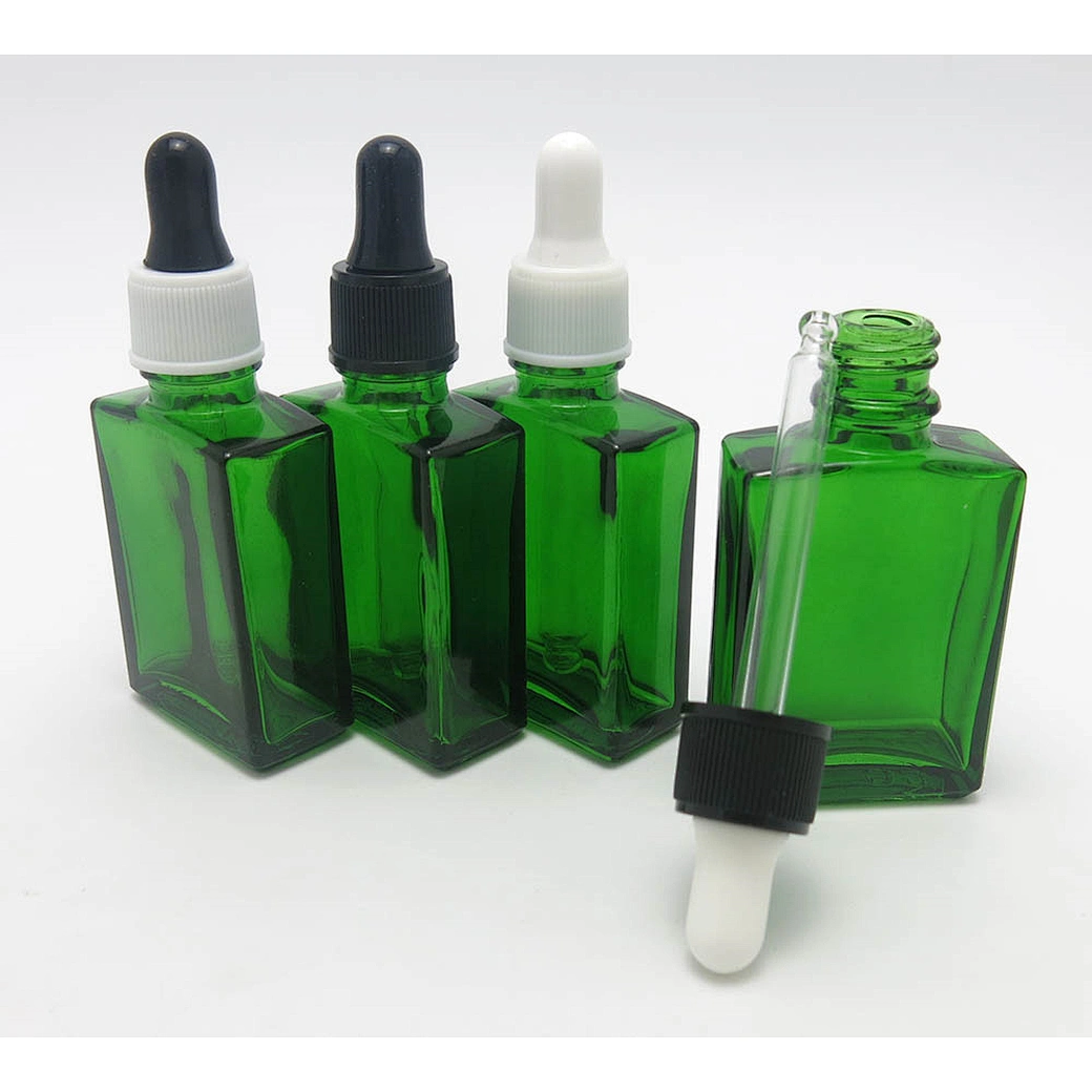 30ml Portable green flat square liquid glass bottle with plastic dropper 1oz Empty glass dropper container