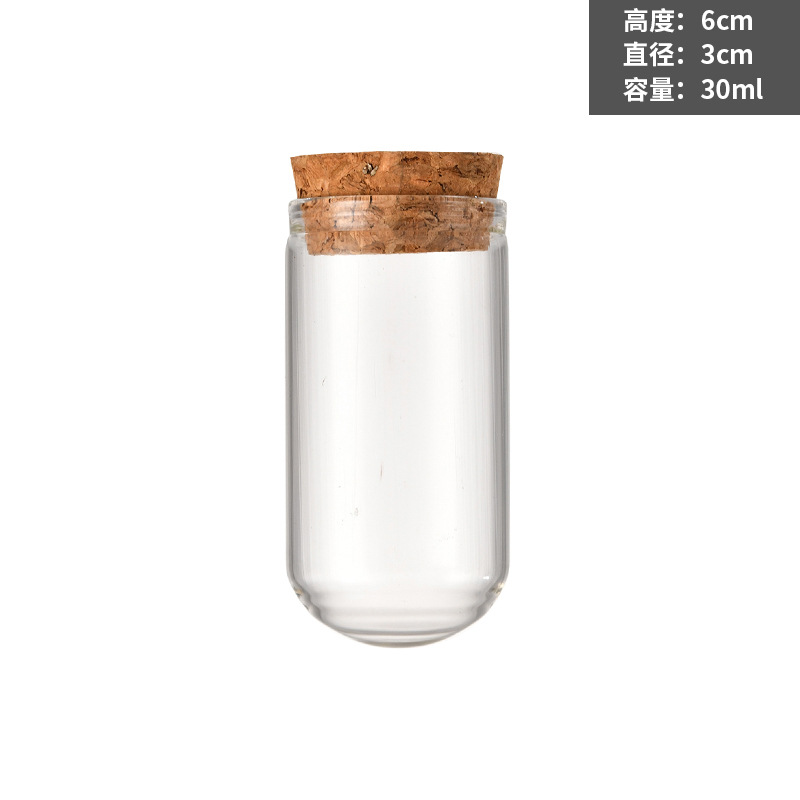 30mm Round Bottom Glass Tubular Bottle – Corked Drifting Wishing Bottle, Wholesale Test Tube for Candy Storage