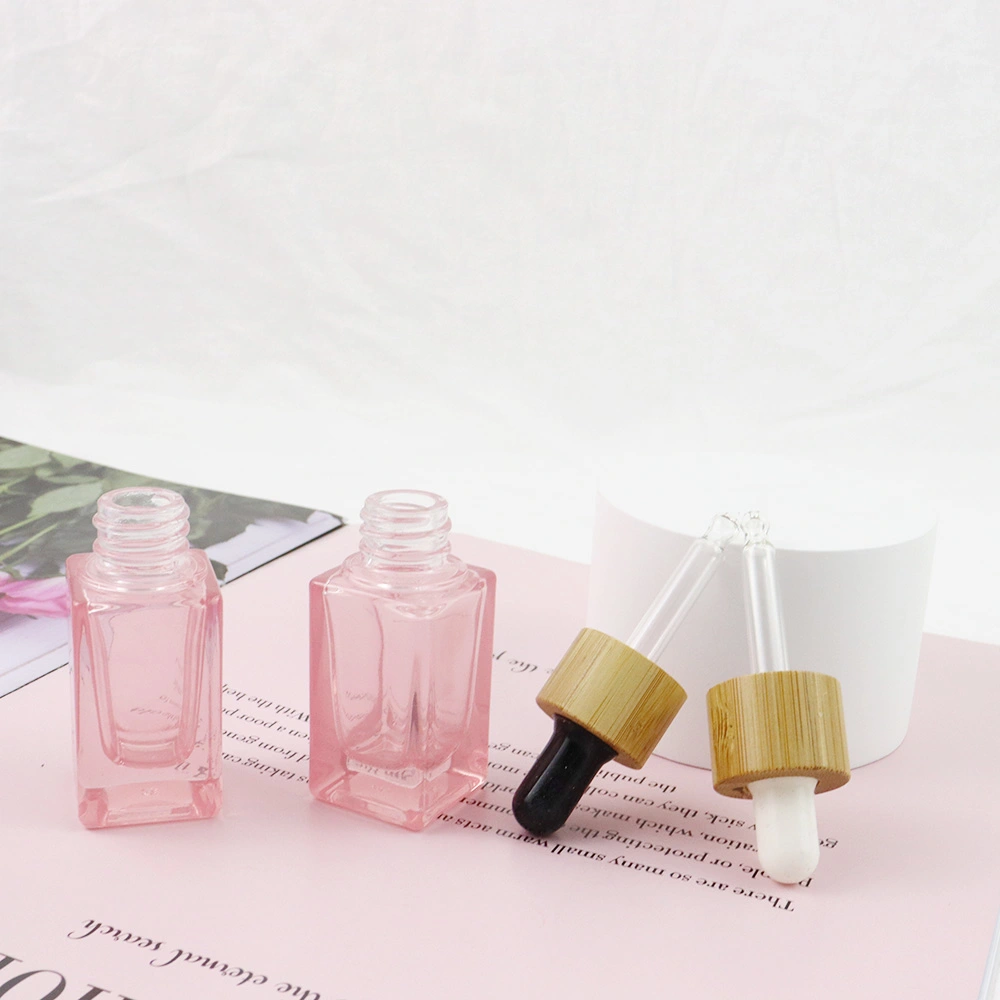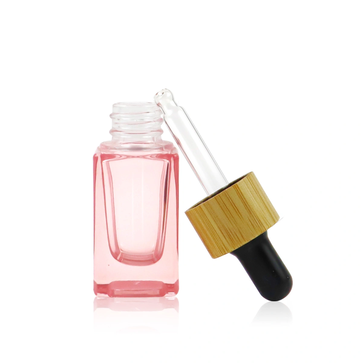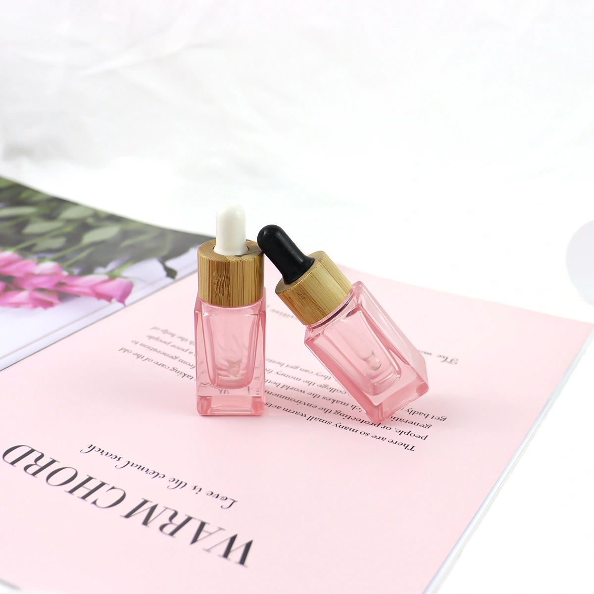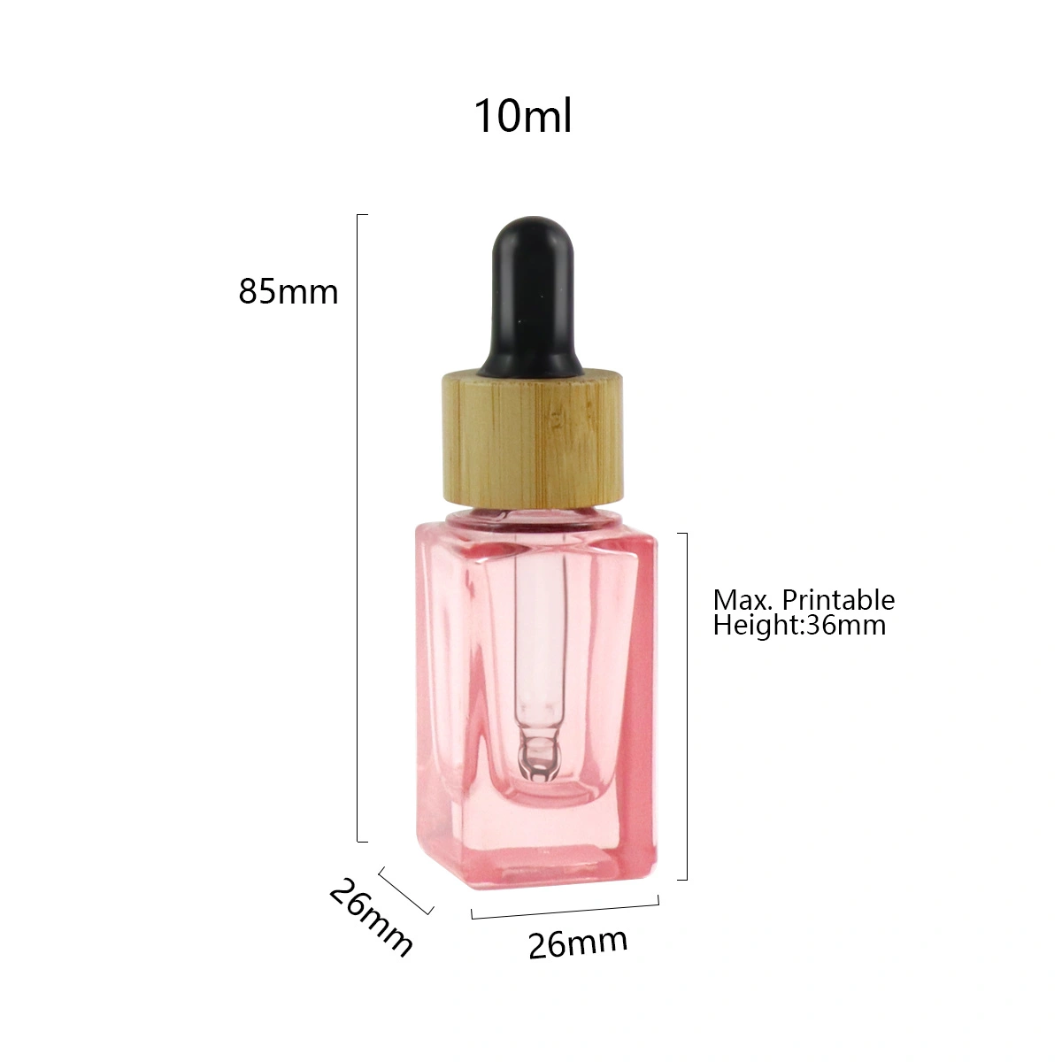 New Trends Wholesale Cosmetic Package Glass Bottle Dropper Square Shape Clear 10mL Glass Bottle With Bamboo Cap