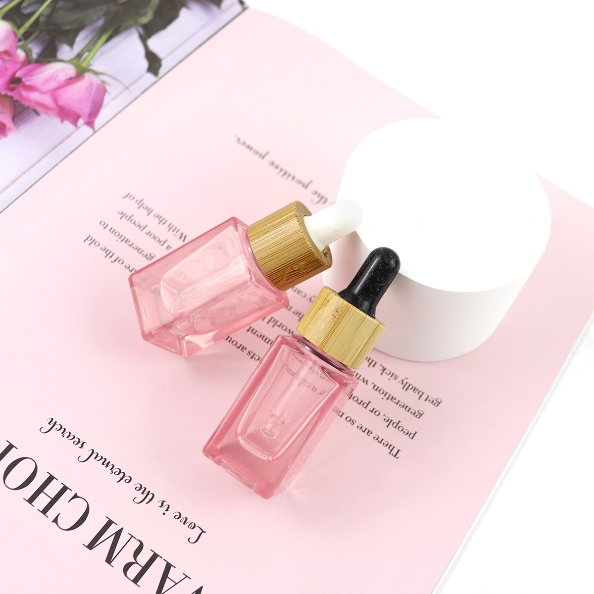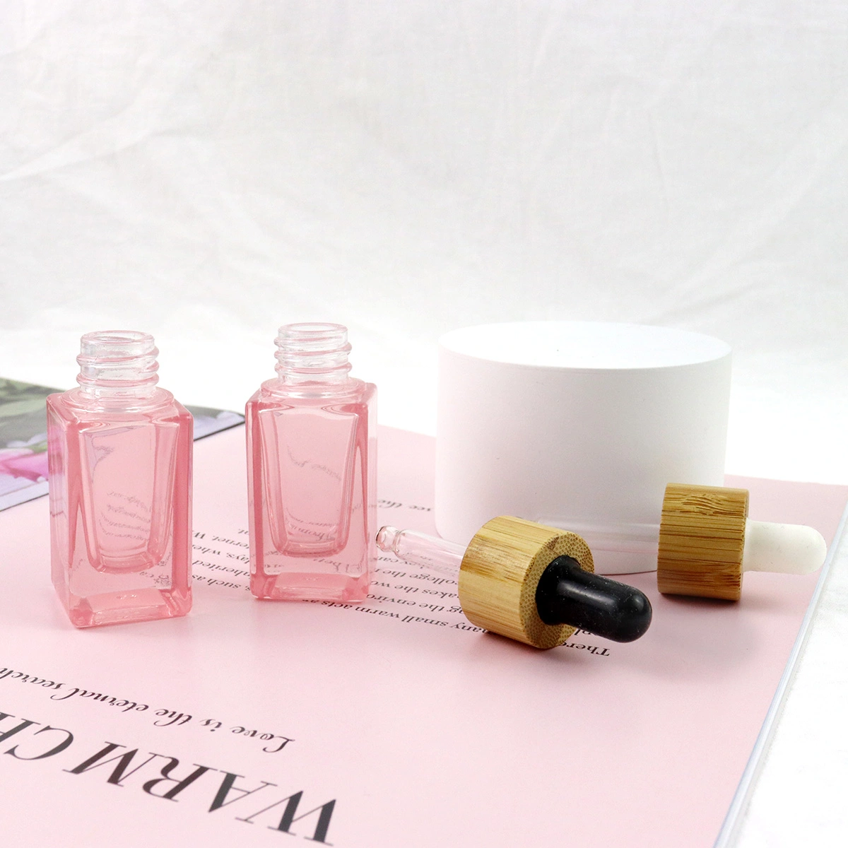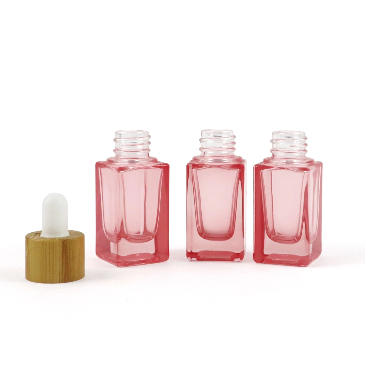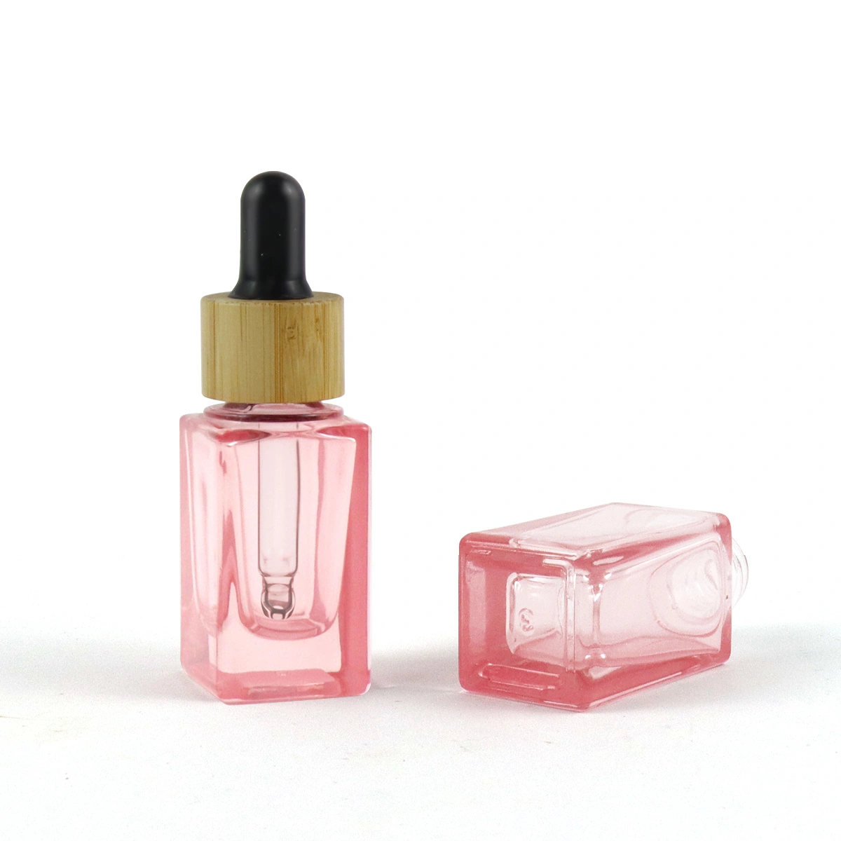New Trends Wholesale Cosmetic Package Glass Bottle Dropper Square Shape Clear 10mL Glass Bottle With Bamboo Cap