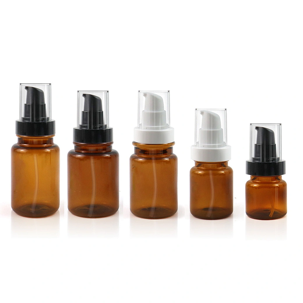 40mL 60mL 80mL 100mL 120mL Recycled Plastic Lotion Serum Bottle Double Wall Brown Cosmetic Jar Amber PET Bottle with Lotion Pump in White Black