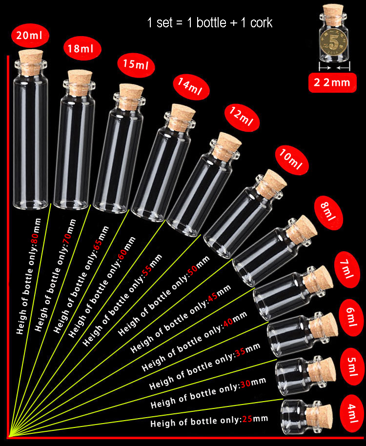 Details of 4ml 5ml, 6ml, 7ml, 8ml Wholesale small empty glass bottles with cork,wishing bottle , drift bottle 10ml , 12ml ,15ml, 18ml ,20ml