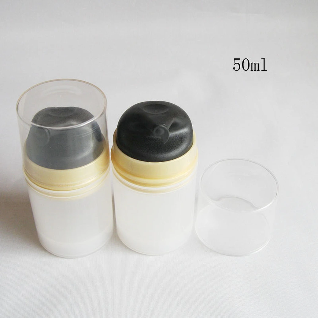 50ml Frosted Vacuum Pump Bottles Makeup Cream Lotion Shampoo Containers Airless Refillable Travel Cosmetic Bottle With Black And Gold Caps