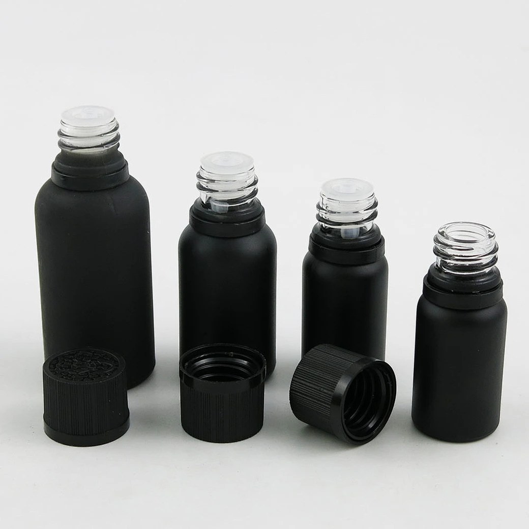 5ml 10ml 15ml 20ml 30m 50ml 100ml black frost glass essential oil bottle with Tamper Evident Childproof Cap orifice reduce