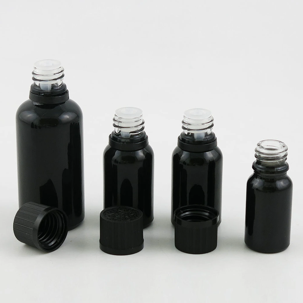5ml 10ml 15ml 20ml 30m 50ml 100ml black glass essential oil bottle with Tamper Evident Childproof Cap orifice reduce