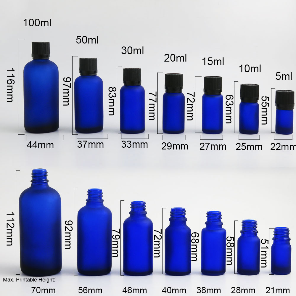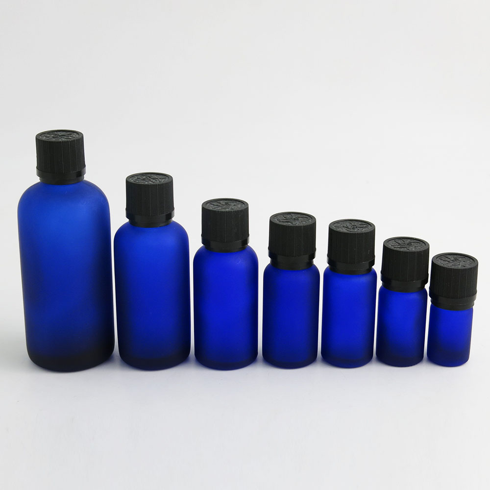 5ml 10ml 15ml 20ml 30m 50ml 100ml blue frost glass essential oil bottle with Tamper Evident Childproof Cap orifice reduce
