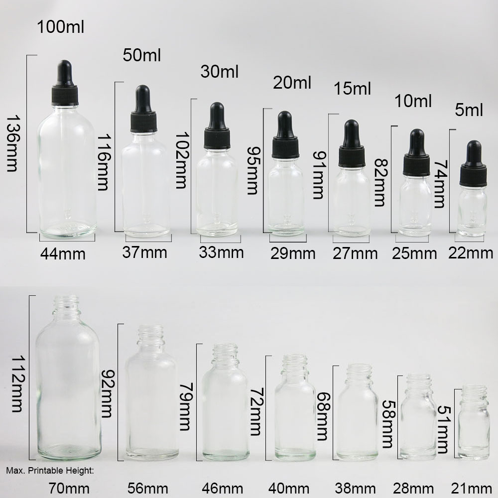 5ml 10ml 15ml 20ml 30ml 50ml 100ml Dropper Glass essential oil Bottle Empty Refillable Drop Vials