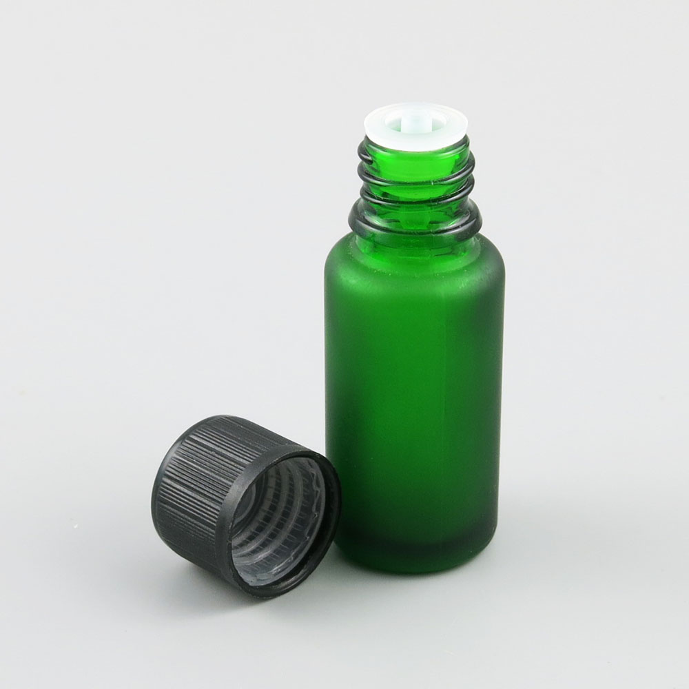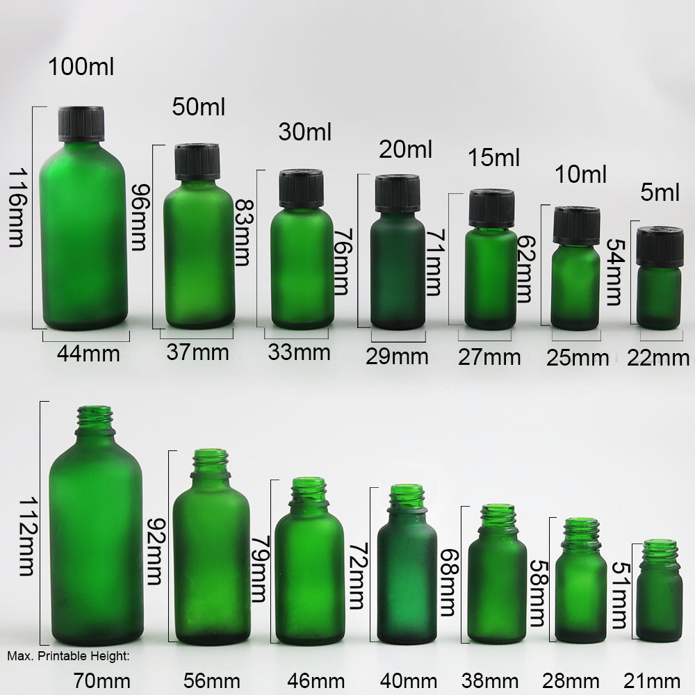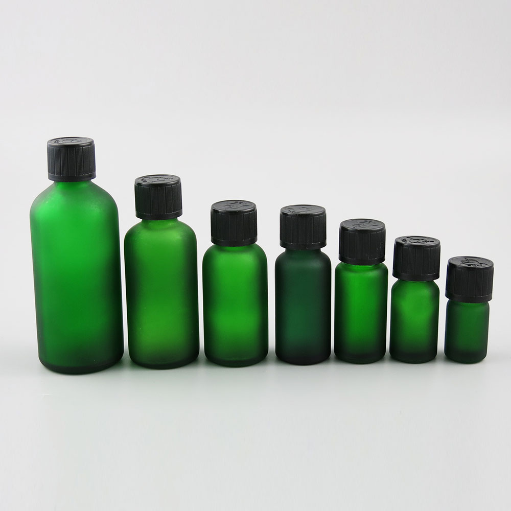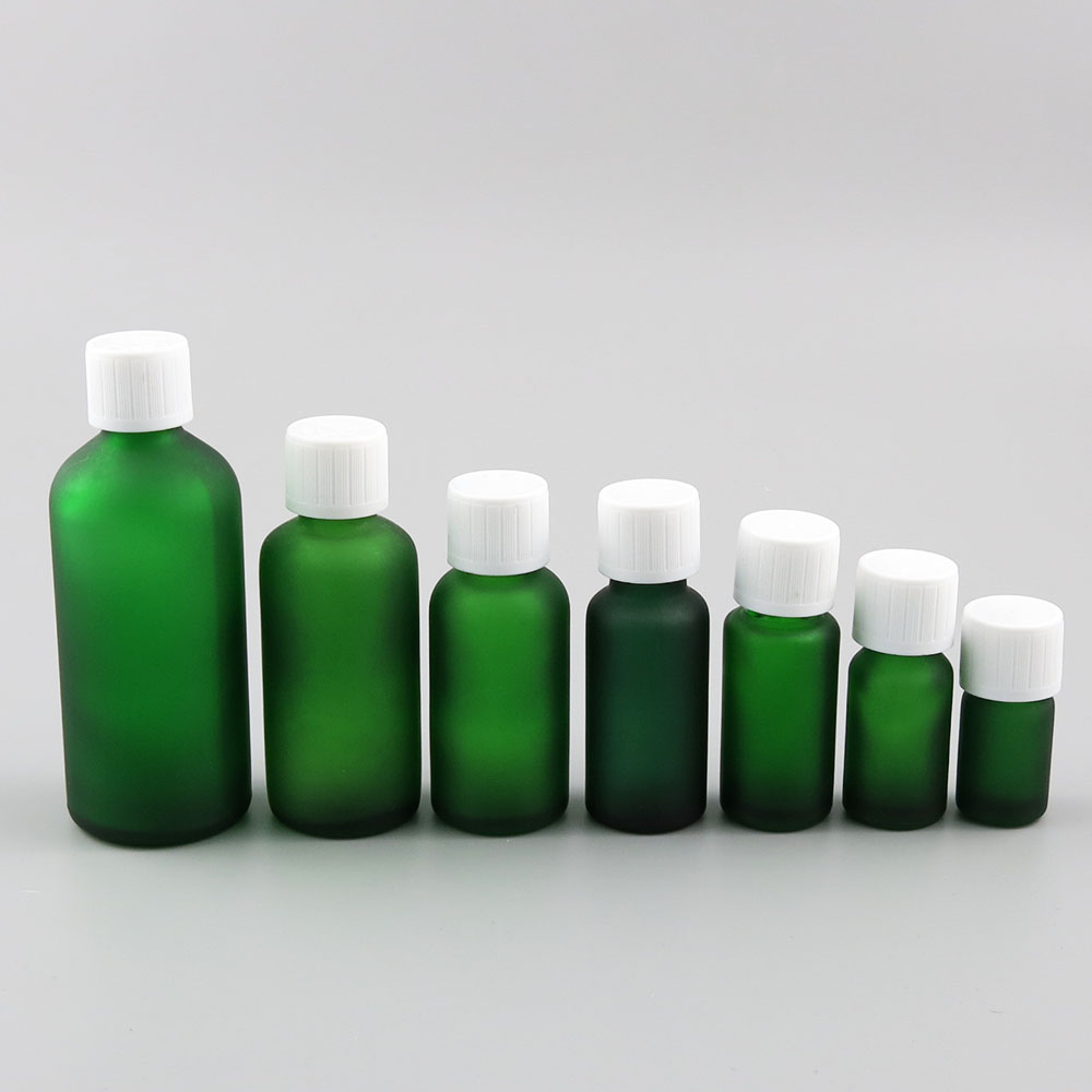 5ml 10ml 15ml 20ml 30ml 50ml 100ml green frost glass bottle Mini glass essential oil bottle with Plastic Childproof Lids