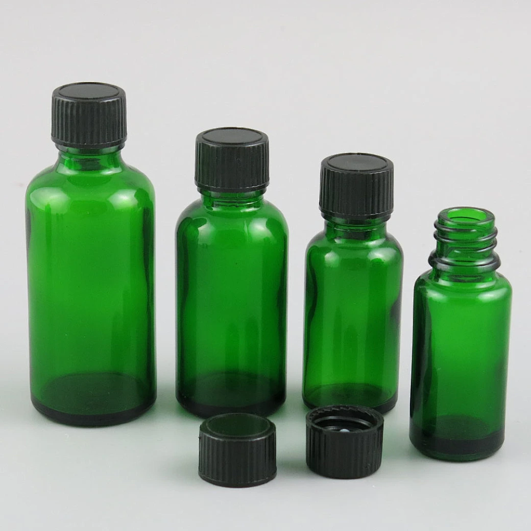 5ml 10ml 15ml 20ml 30ml 50ml 100ml refillable phenolic cone cap green glass essential oil bottle