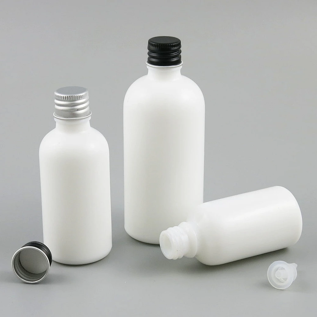 5ml 10ml 15ml 20ml 30ml 50ml 100ml white glass essential oil bottles vial container with orifice reducers black white tamper evident caps