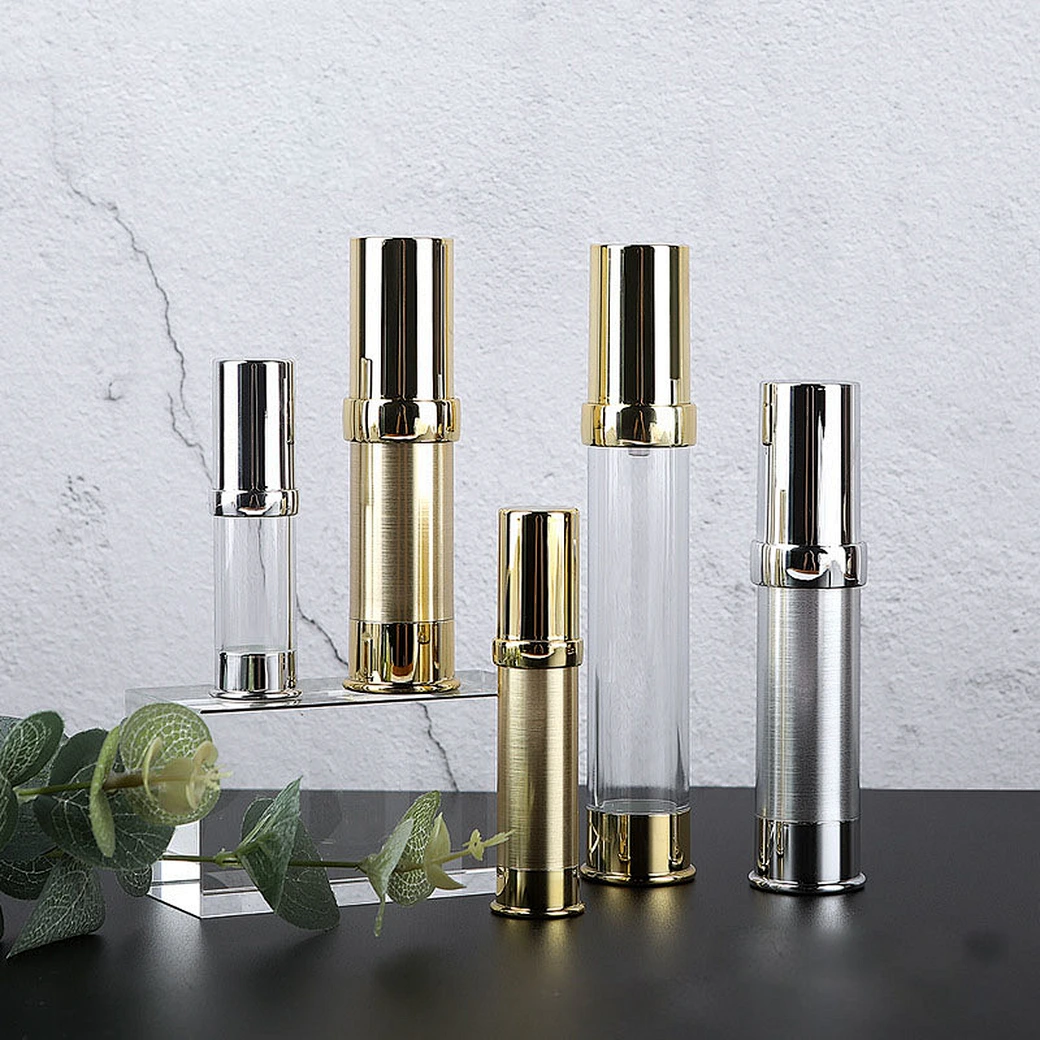 5ml 10ml 15ml20ml30ml luxury metal aluminum lotion airless pump bottle clear plastic pump bottle,cosmetic cream airless bottle