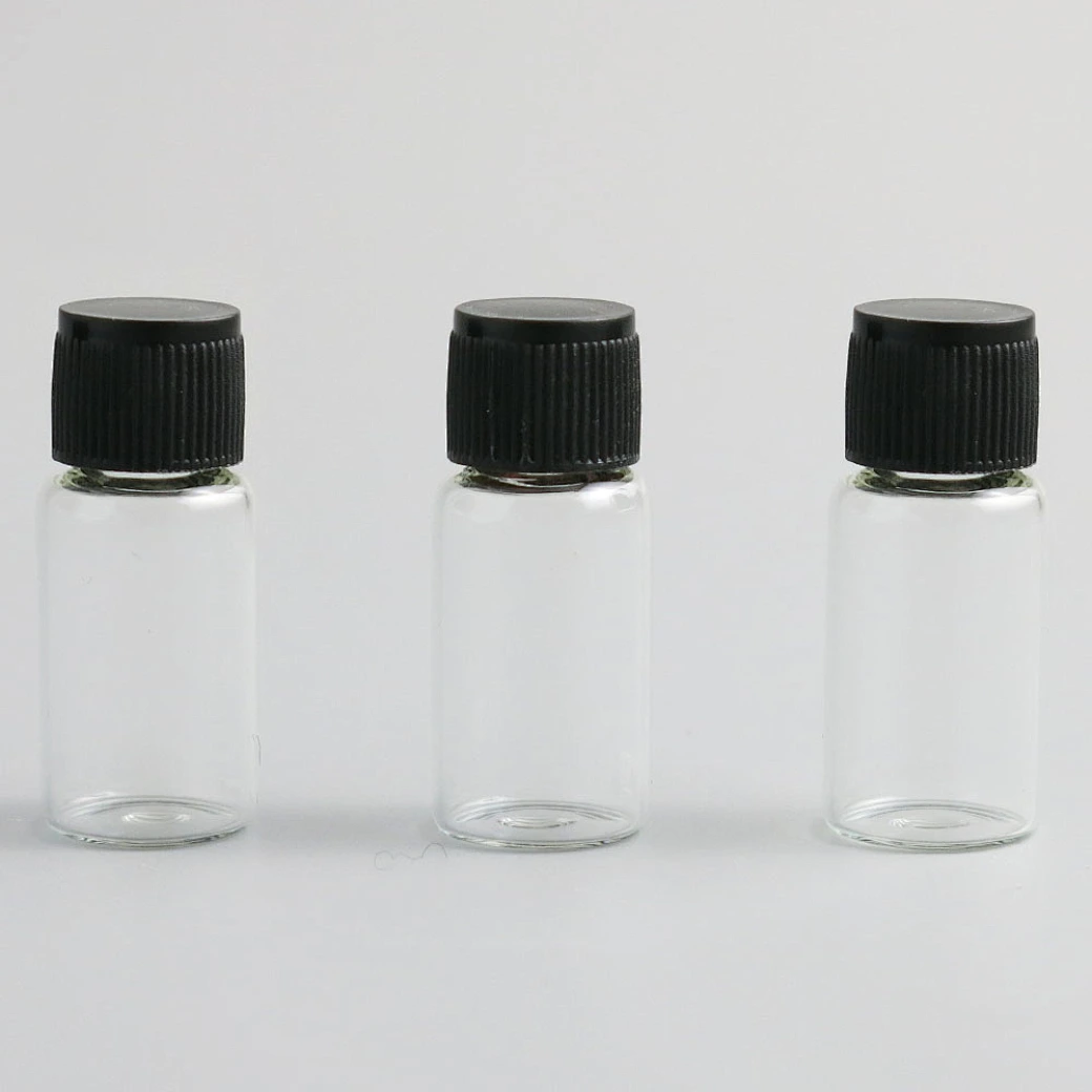 5ml Clear glass lotion bottles essential oil perfume vials cream jar cosmetic packaging container with black screw top cap