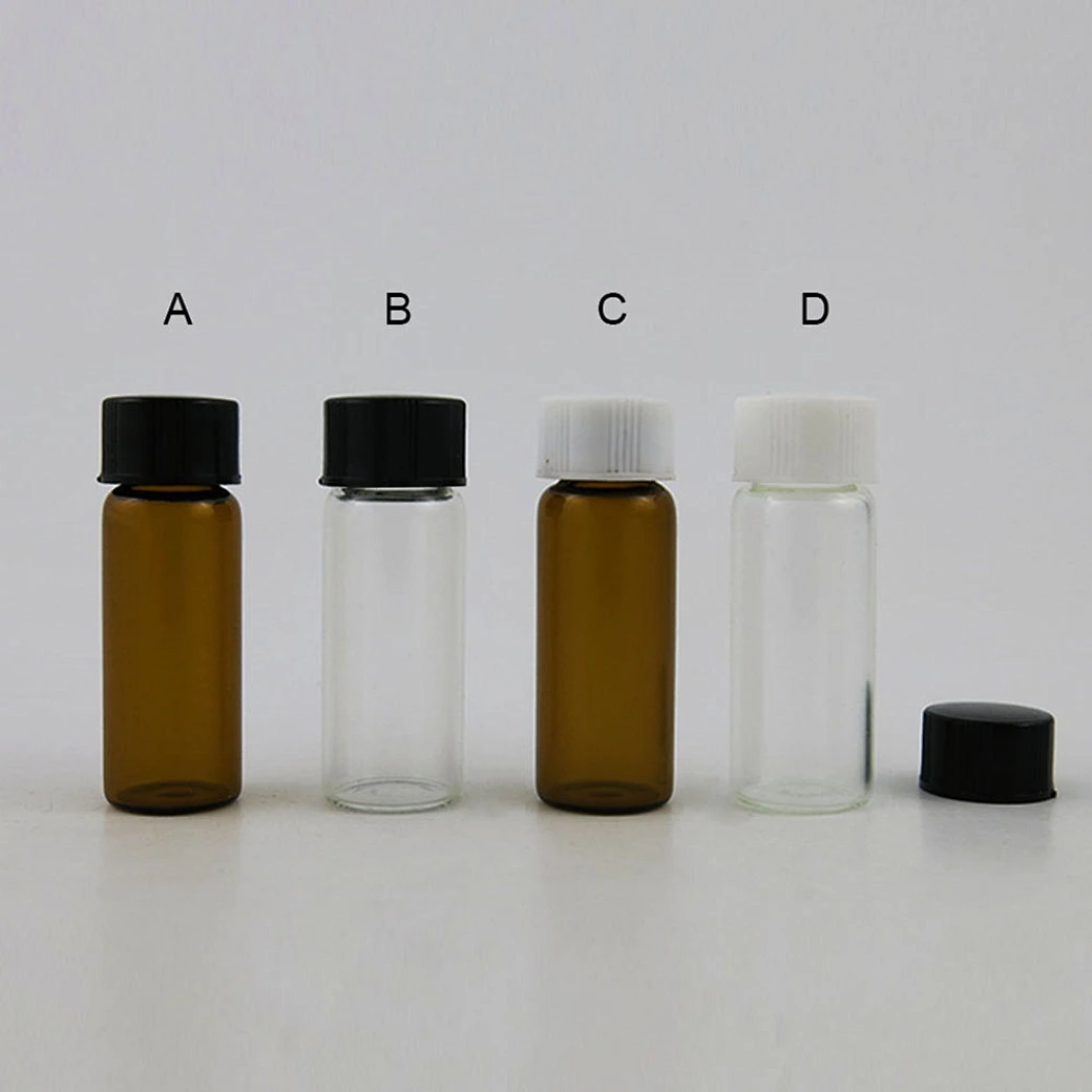 5ml Mini Clear Amber Glass Bottles with Screw Top Cap Empty Jars Vial Candy Vanilla Pill Food Perfume Bottle Black&White Cap Jars