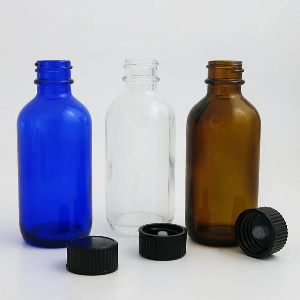 60ml Clear Amber Cobalt Blue Glass Dropper Bottle 2oz Eye Dropper for Essential Oils Aromatherapy Boston Round Containers