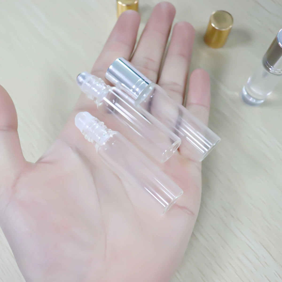 6ml Cosmetic Gold Sliver Roll On Glass Bottles With Metal Roller Balls For Essential Oil Or Perfume