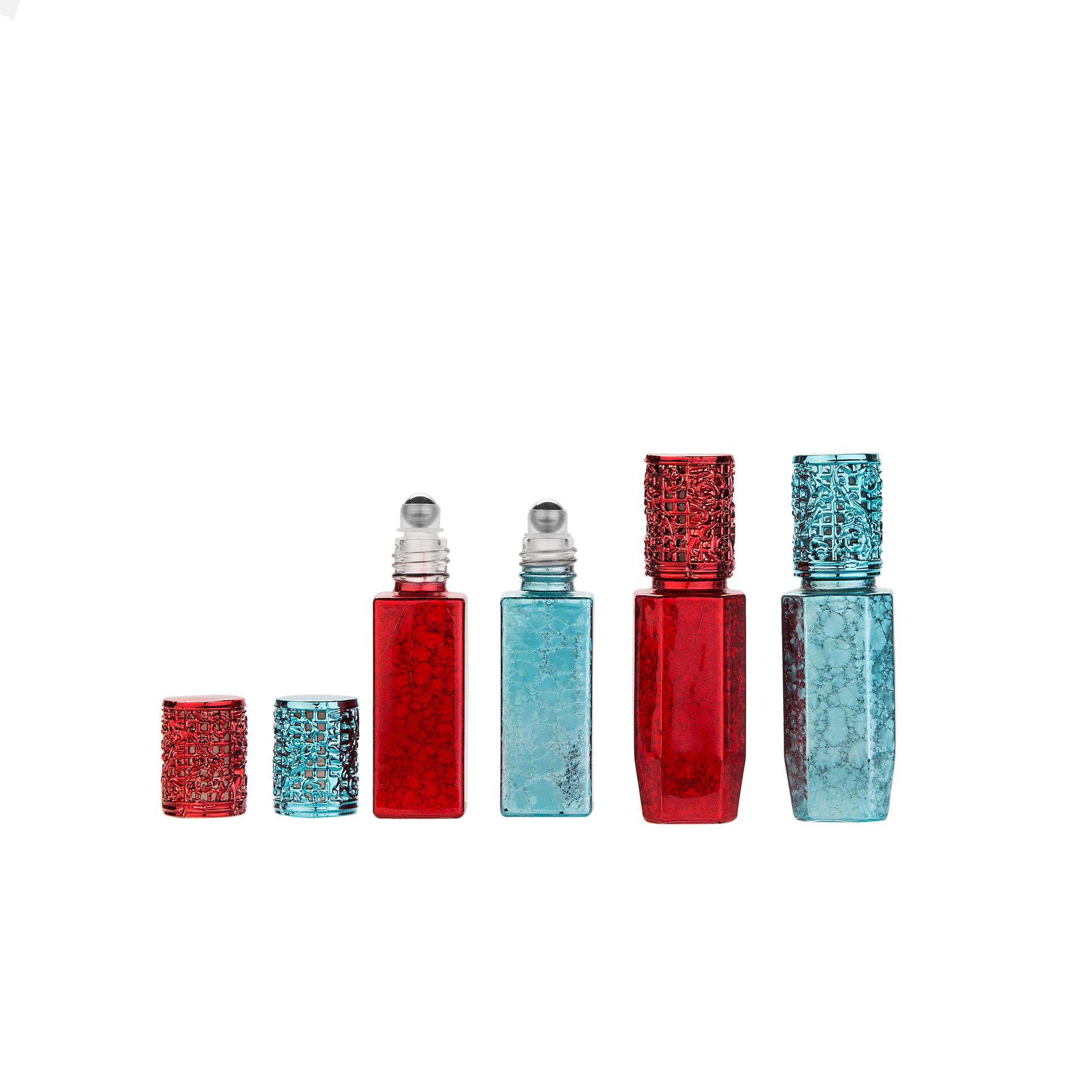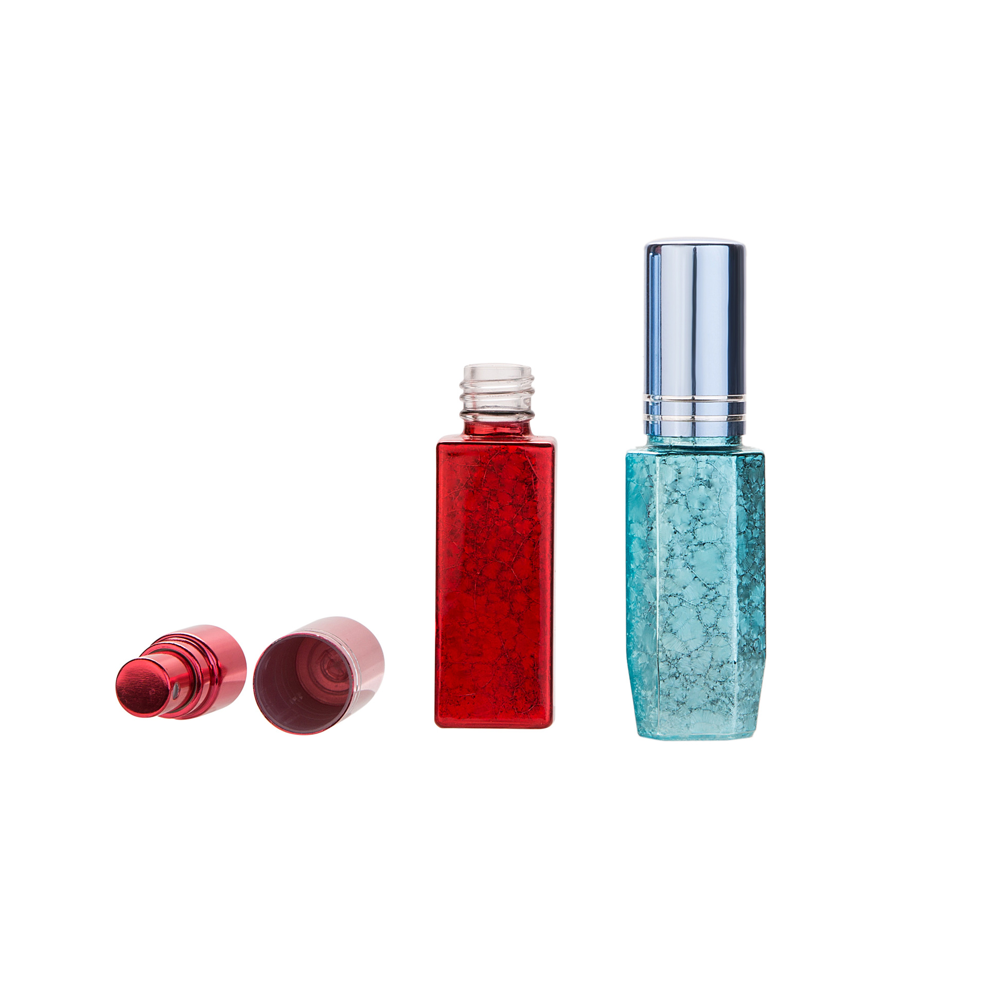 8ml,6ml glass suqare bottle blue red metal roll on esstional oil lotion personal care perfume eliguid spray