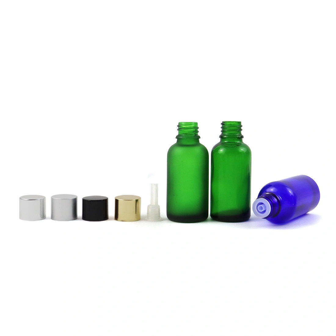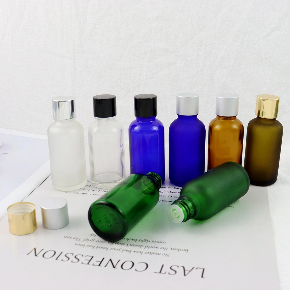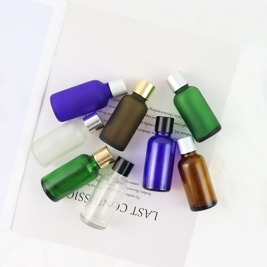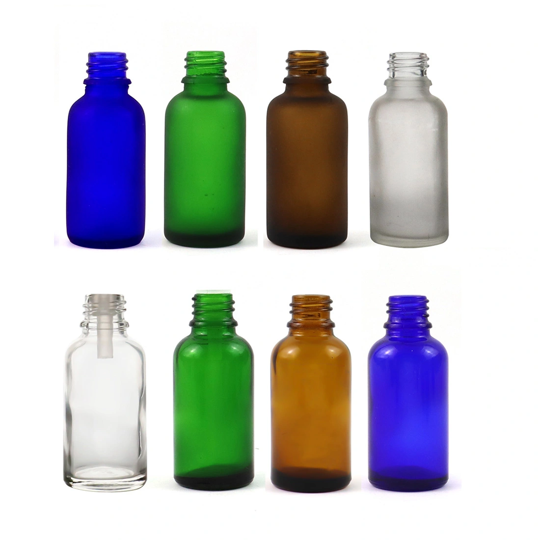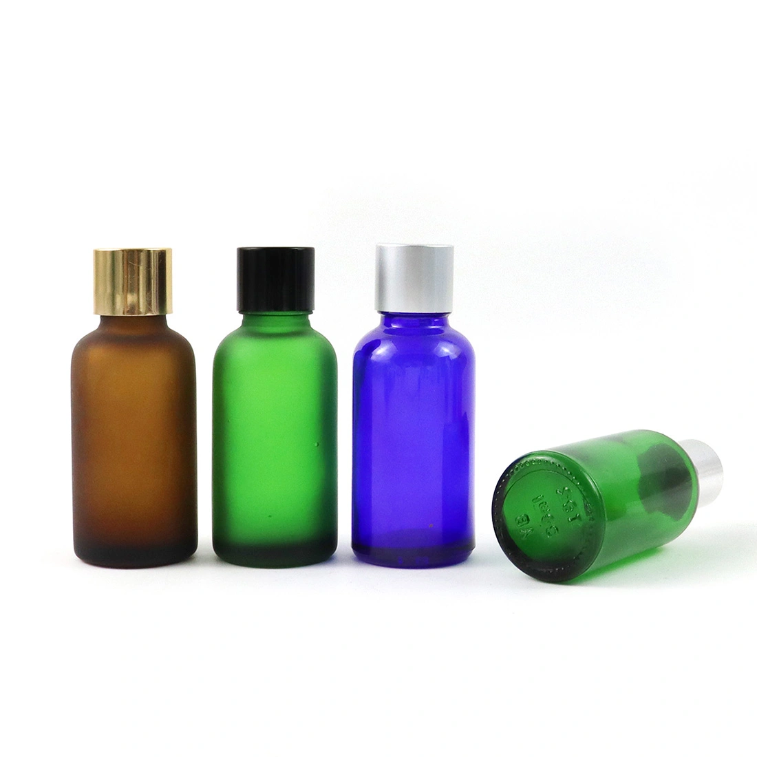Aromatherapy 30 ml Clear Frosted Glass Vintage Flat Lid Small Essential Oil Bottles Custom Amber Green Blue Clear