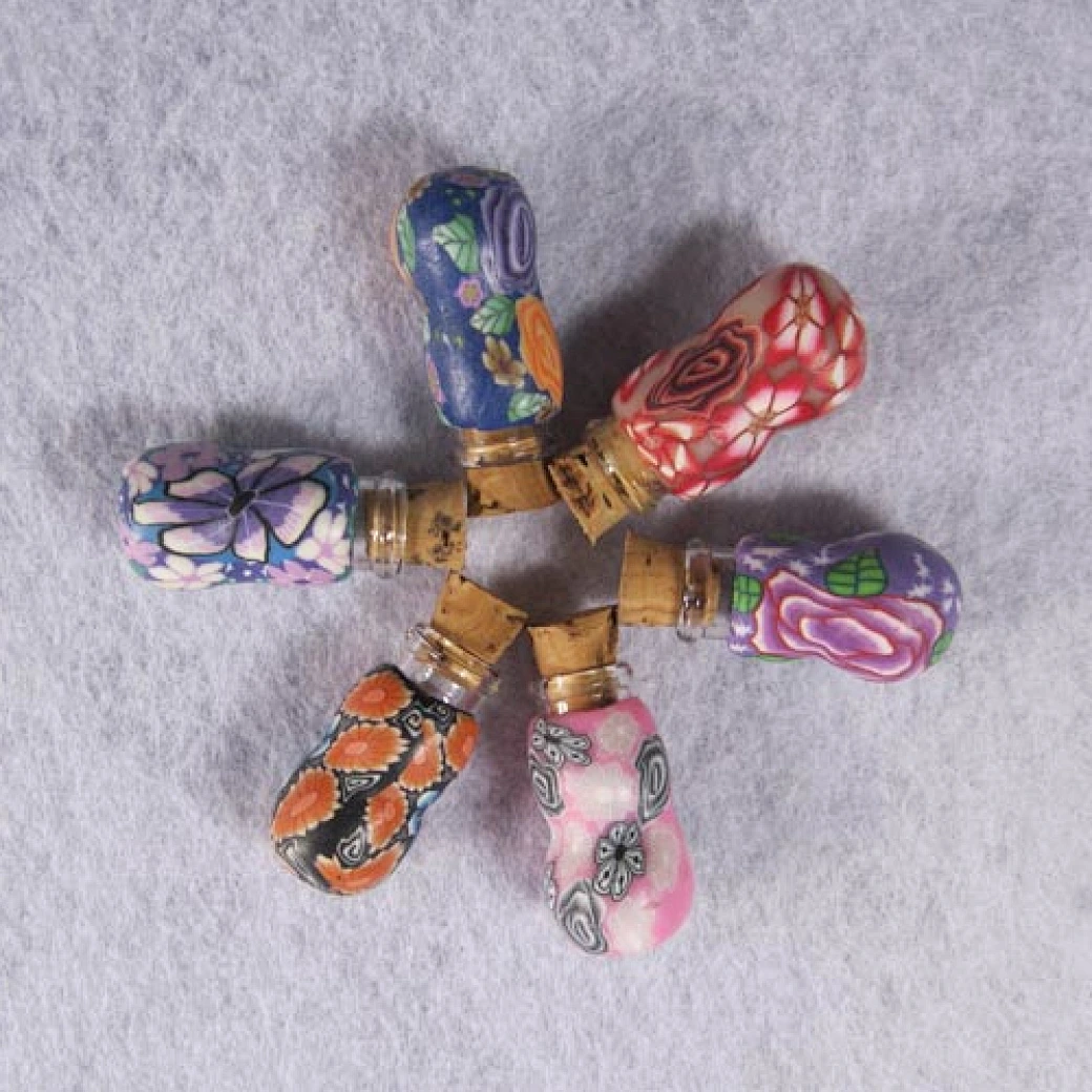 Colorful High Quality Soft Ceramic Dark Brown Vials Clear Glass Bottles with Corks Empty Sample Jars