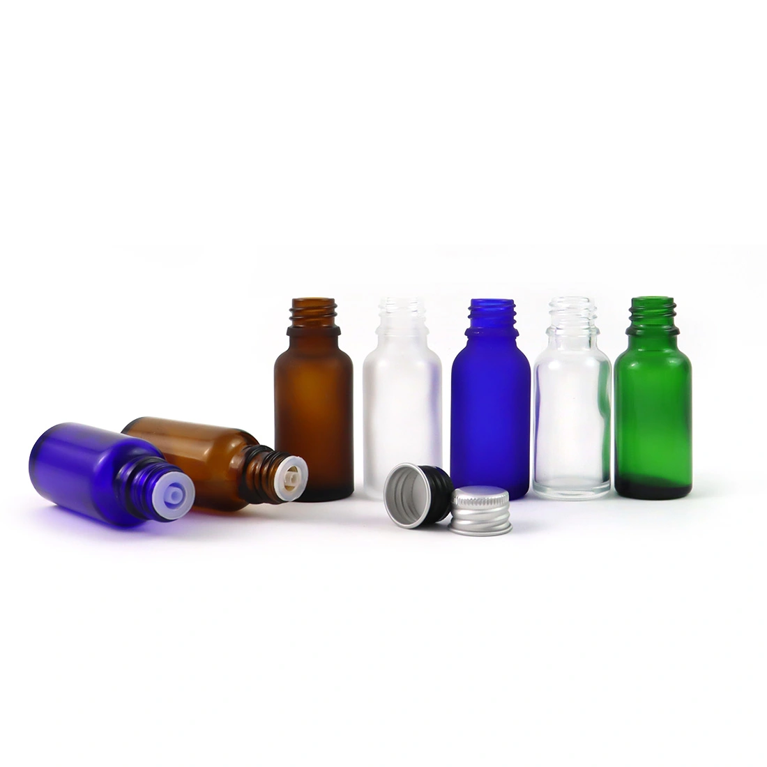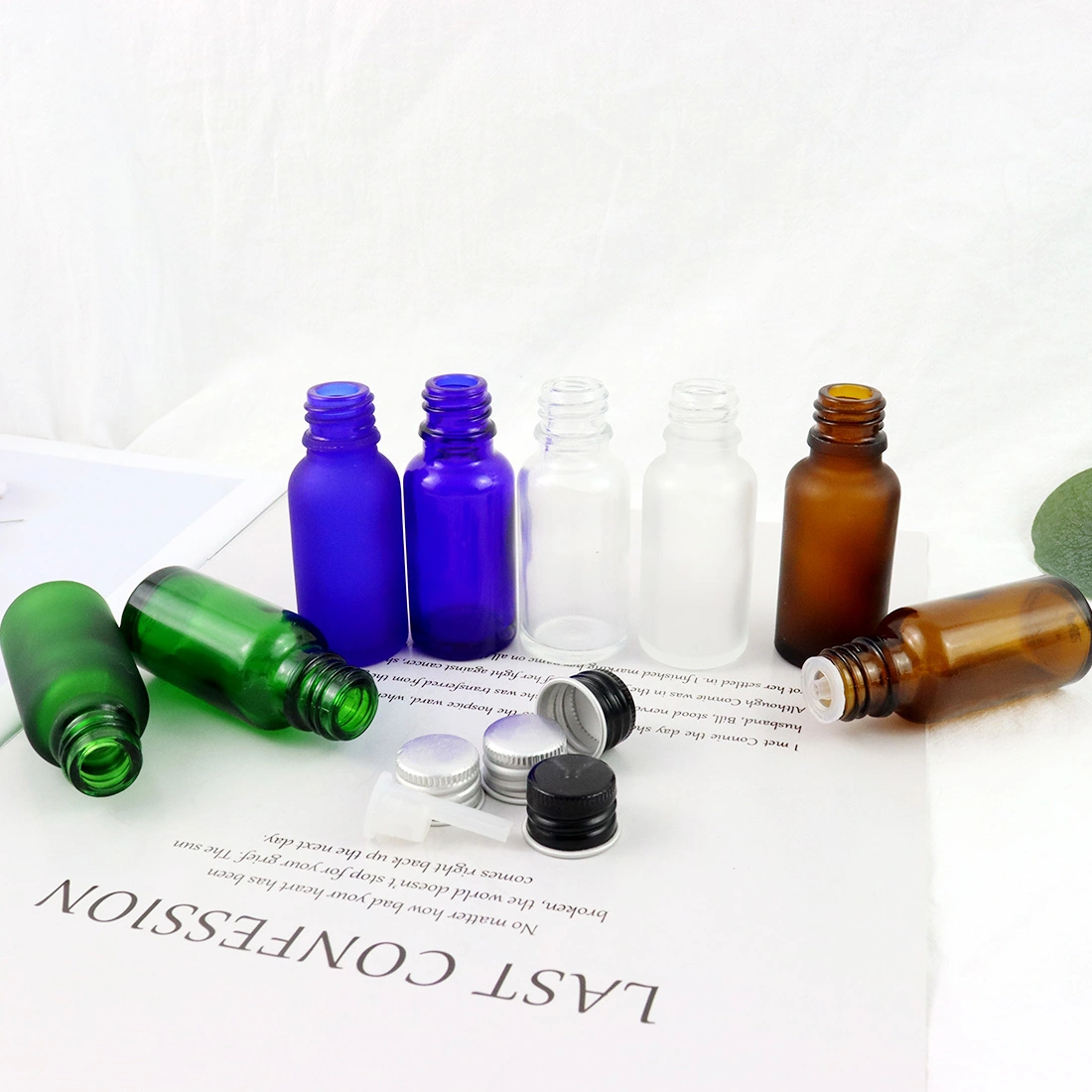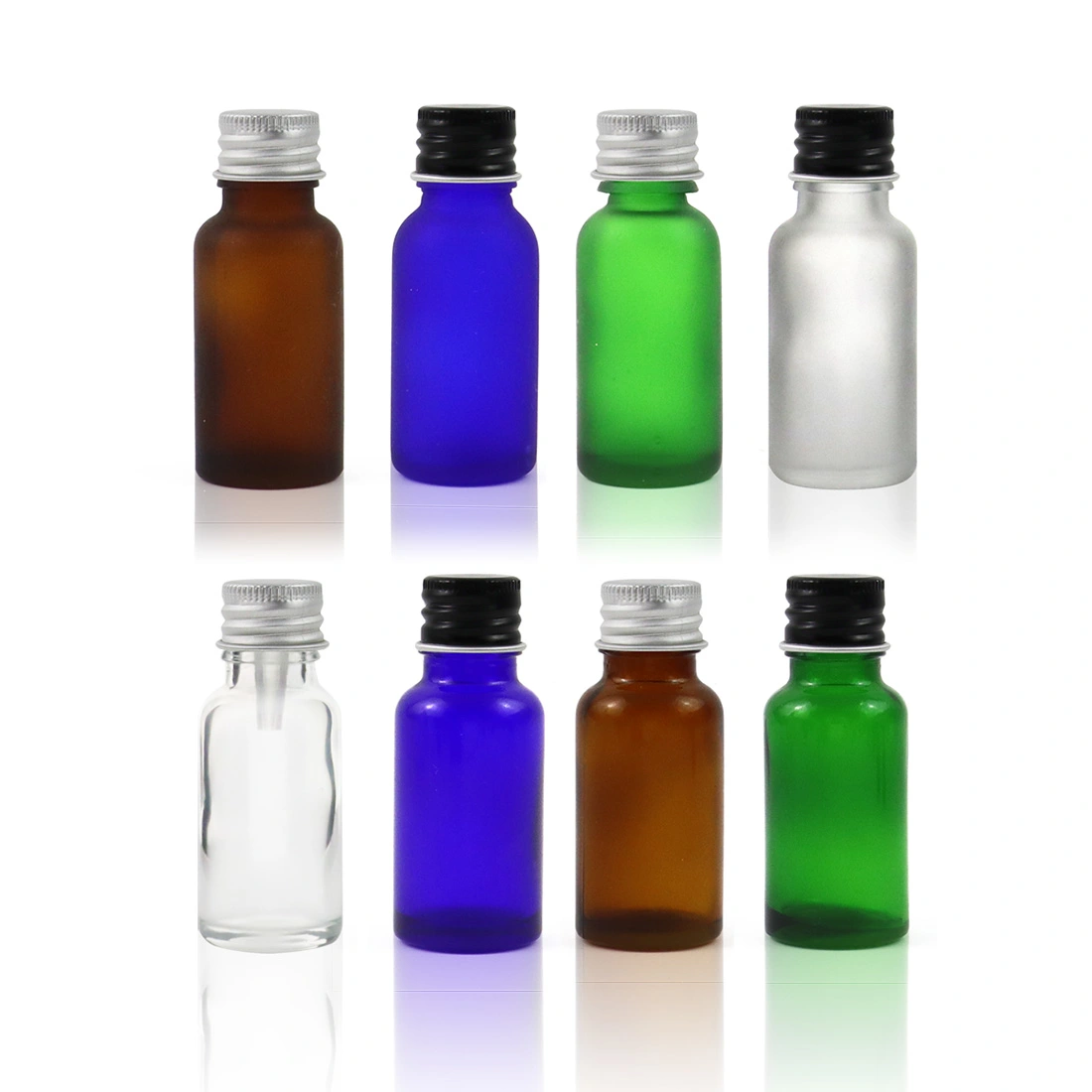 Custom Amber Green Blue Clear Aromatherapy 20 ml Clear Frosted Glass Vintage Flat Lid Small Essential Oil Bottles
