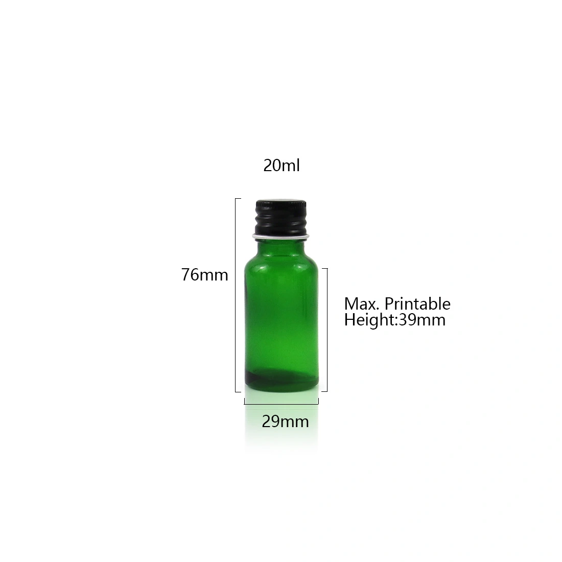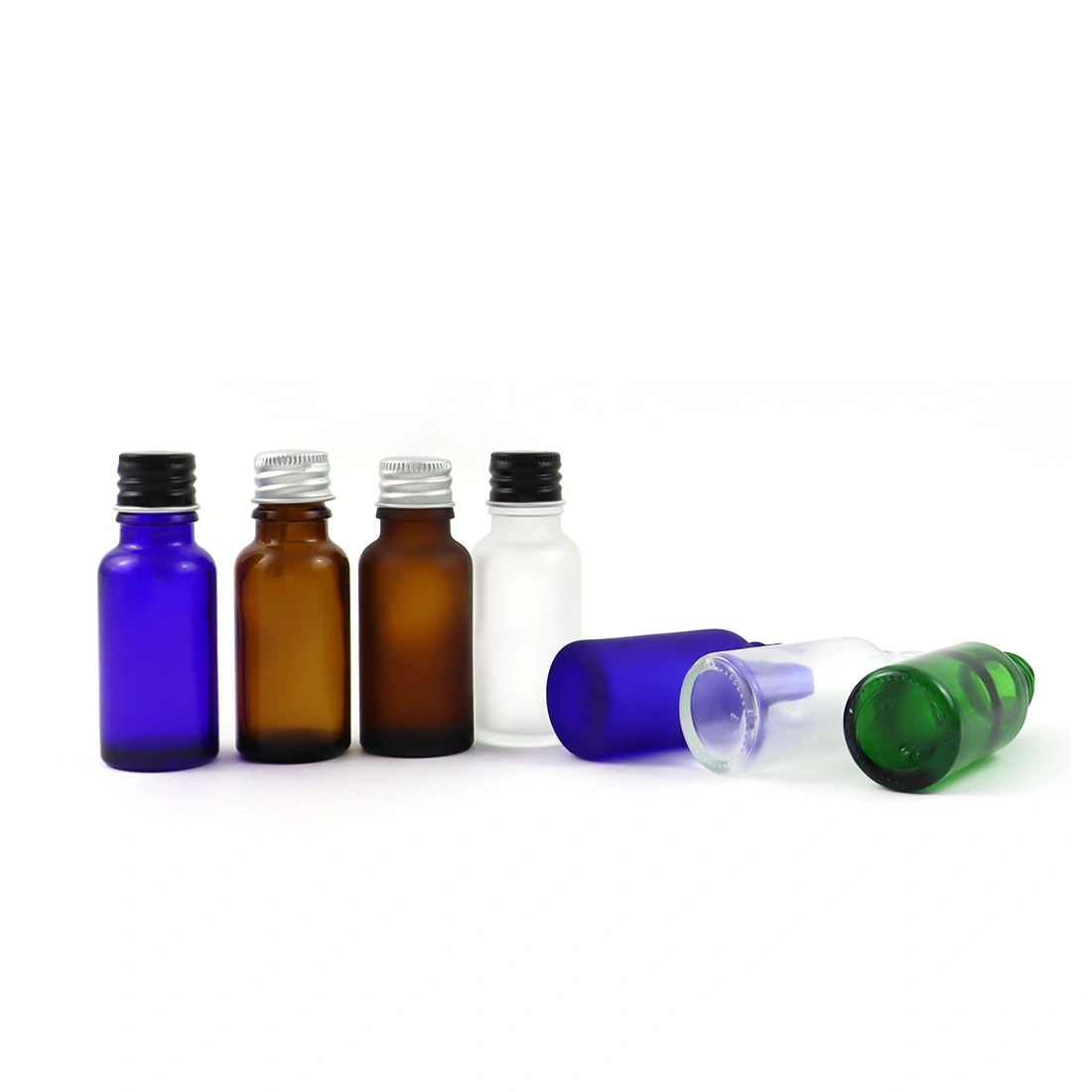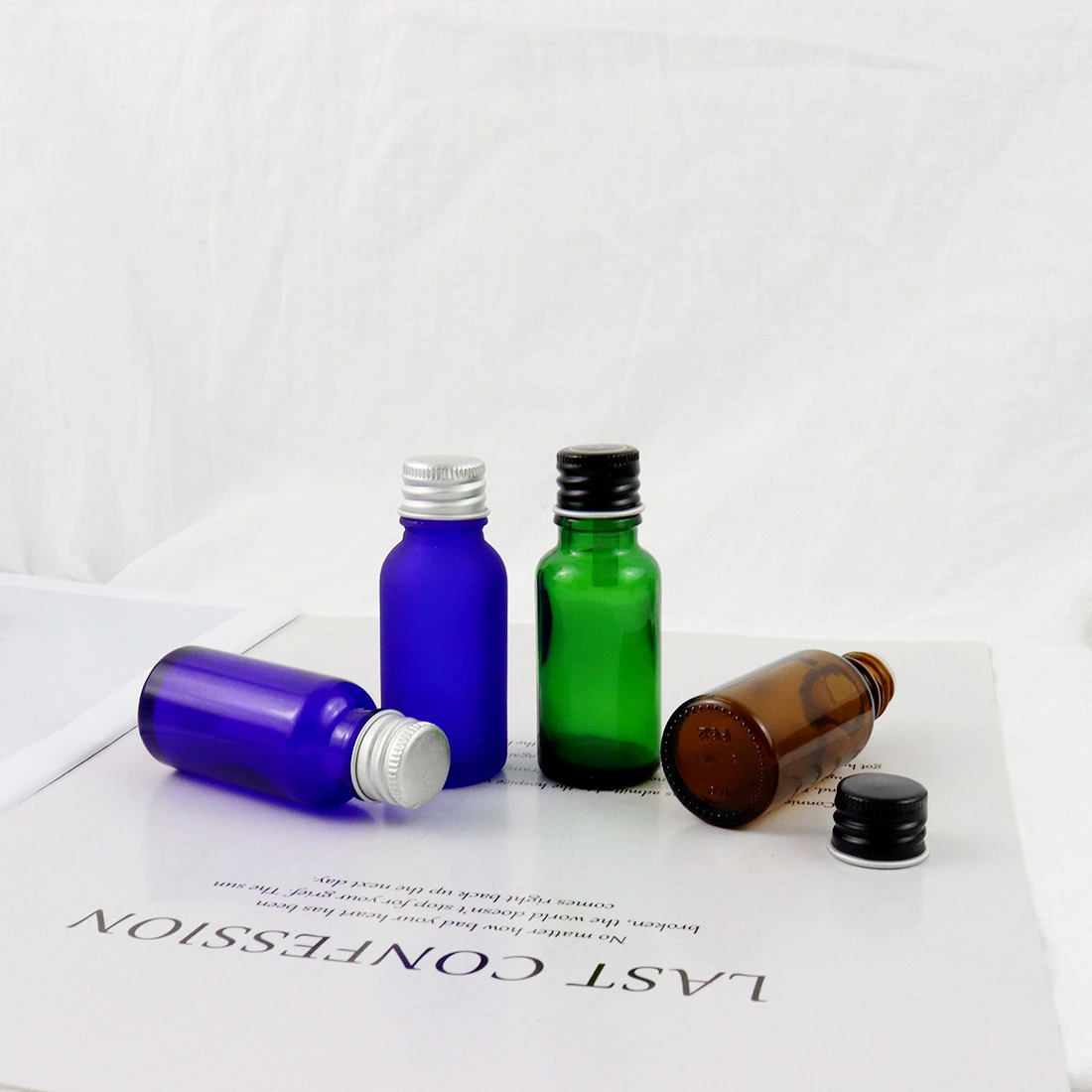Custom Amber Green Blue Clear Aromatherapy 20 ml Clear Frosted Glass Vintage Flat Lid Small Essential Oil Bottles
