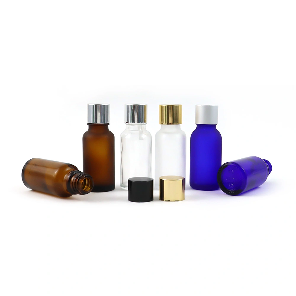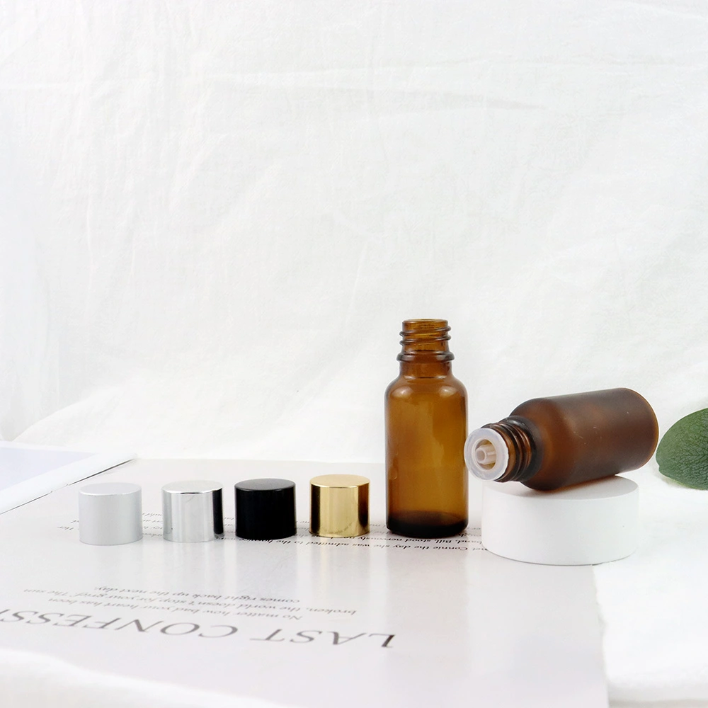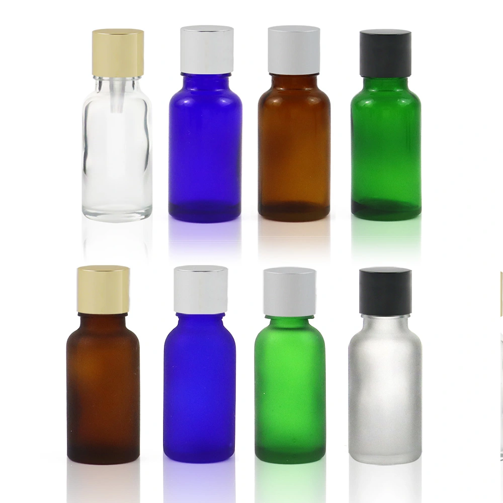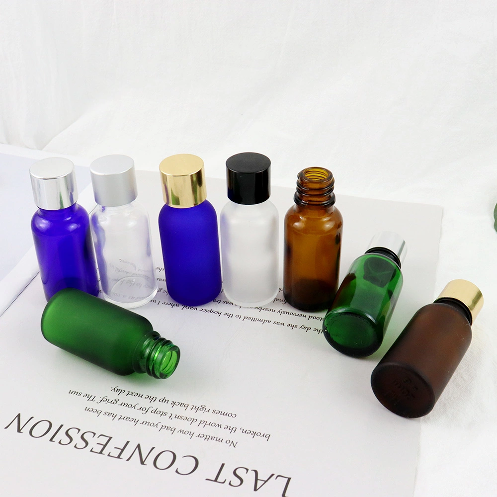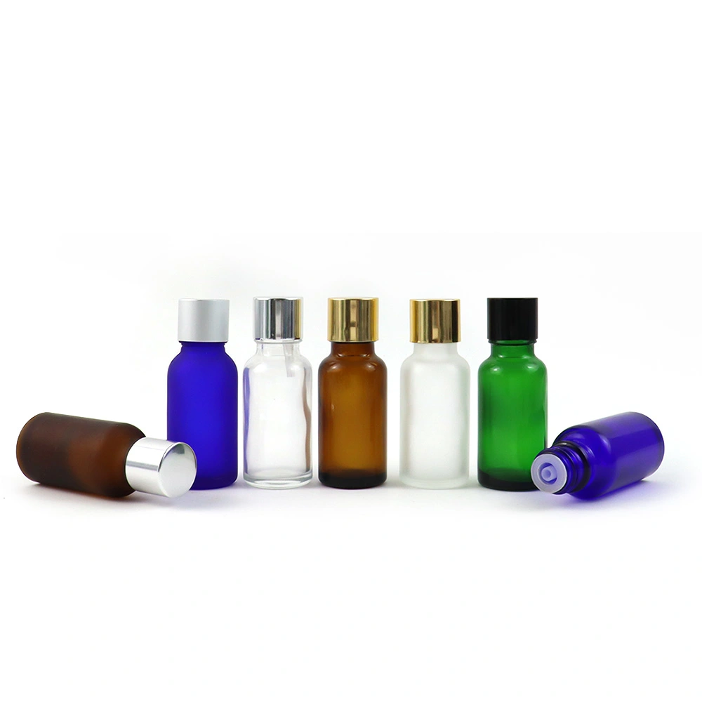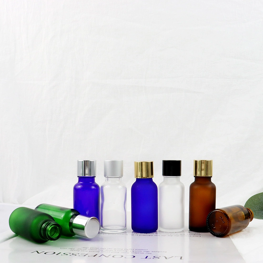 Custom Amber Green Blue Clear Aromatherapy 20 ml Clear Frosted Glass Vintage Flat Lid Small Essential Oil Bottles