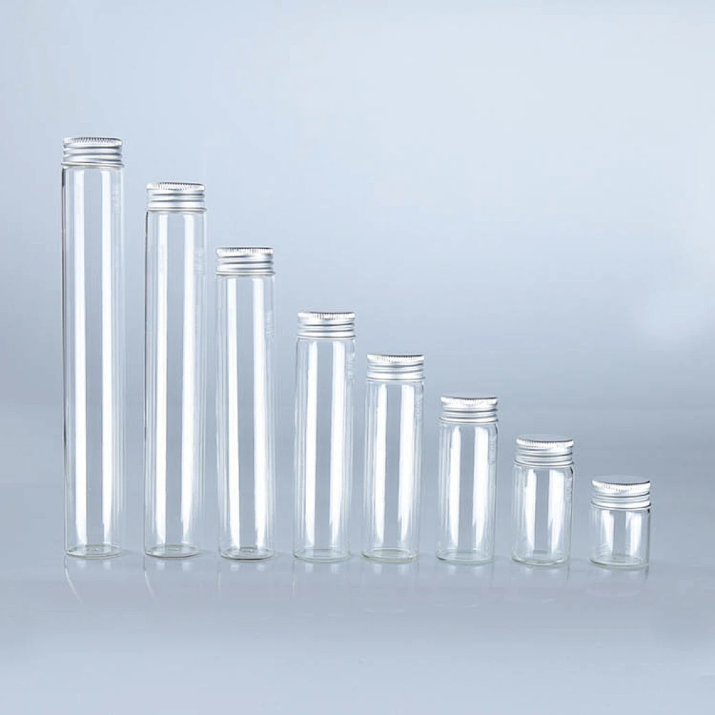 Diameter 30mm Clear Glass Tube Packaging With Gold Metal Screw Cap Dimensions Are Optional