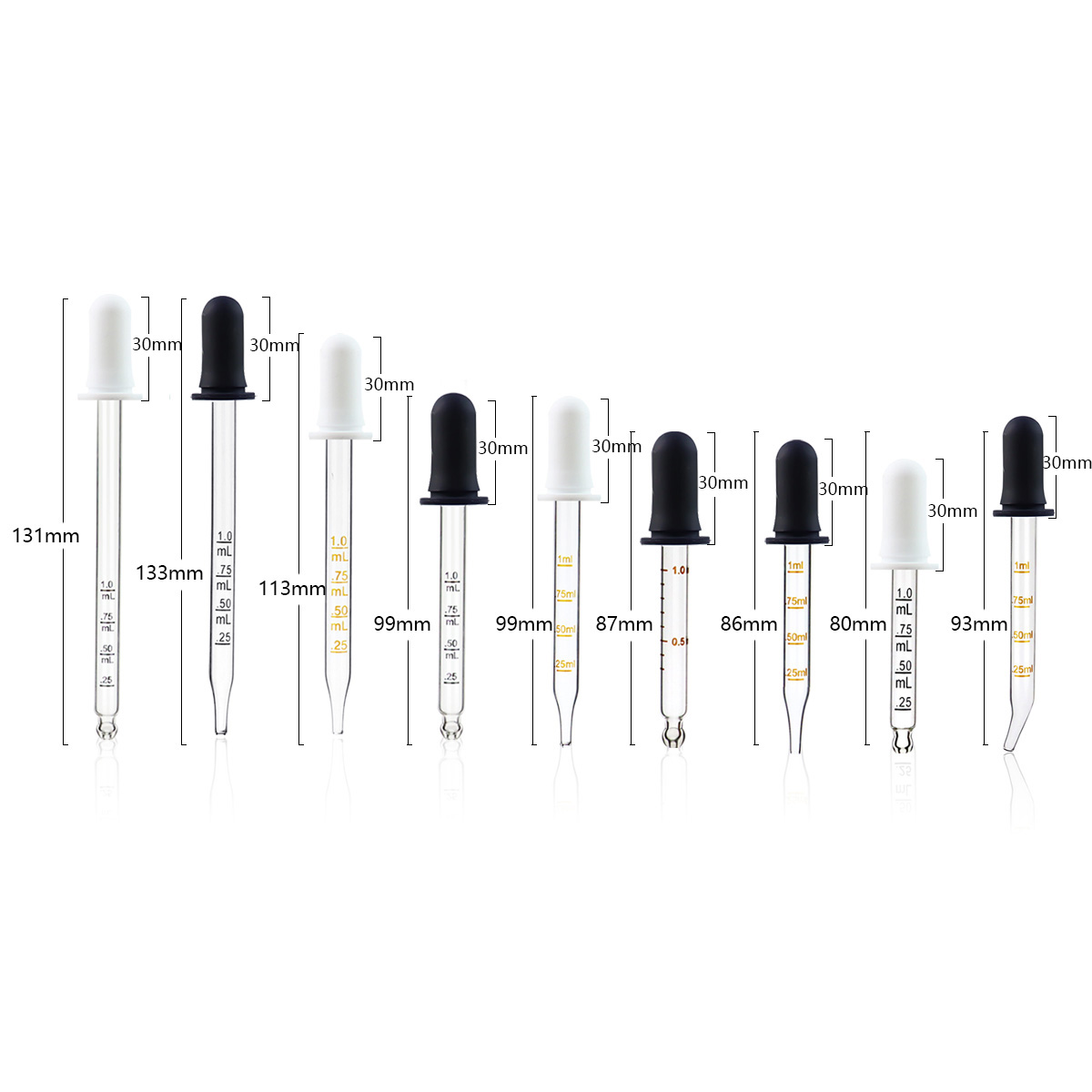 Dropper with Bulb Tip Silicone and glass Pipettes Droppers Clear Liquid Medicine Eye