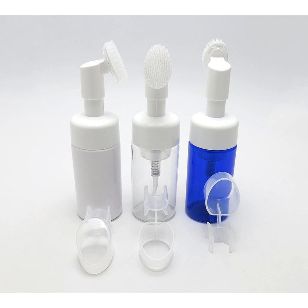 Empty 100ml Cosmetic Facial Wash Plastic Container PET White Cleanser Cream Liquid Soap Foam Bottle With Flower Shape Foaming Pump