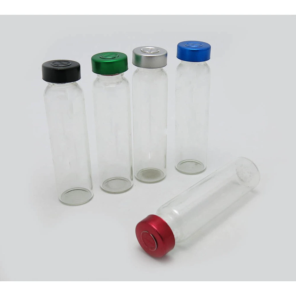 Empty amber clear glass vial with caps & rubber stoppers 20ml injection medical bottles