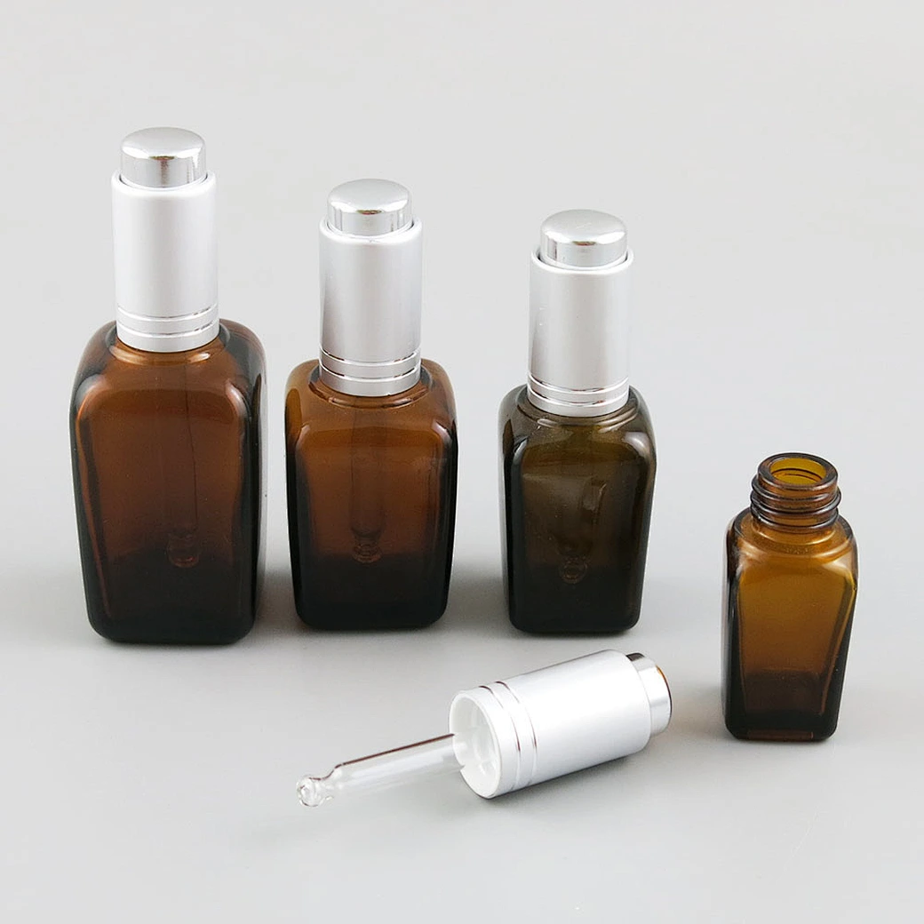 Empty amber glass essential oil bottle with gold Press dropper blue glass perfume bottles 10ml 25ml 35ml 50ml 100ml