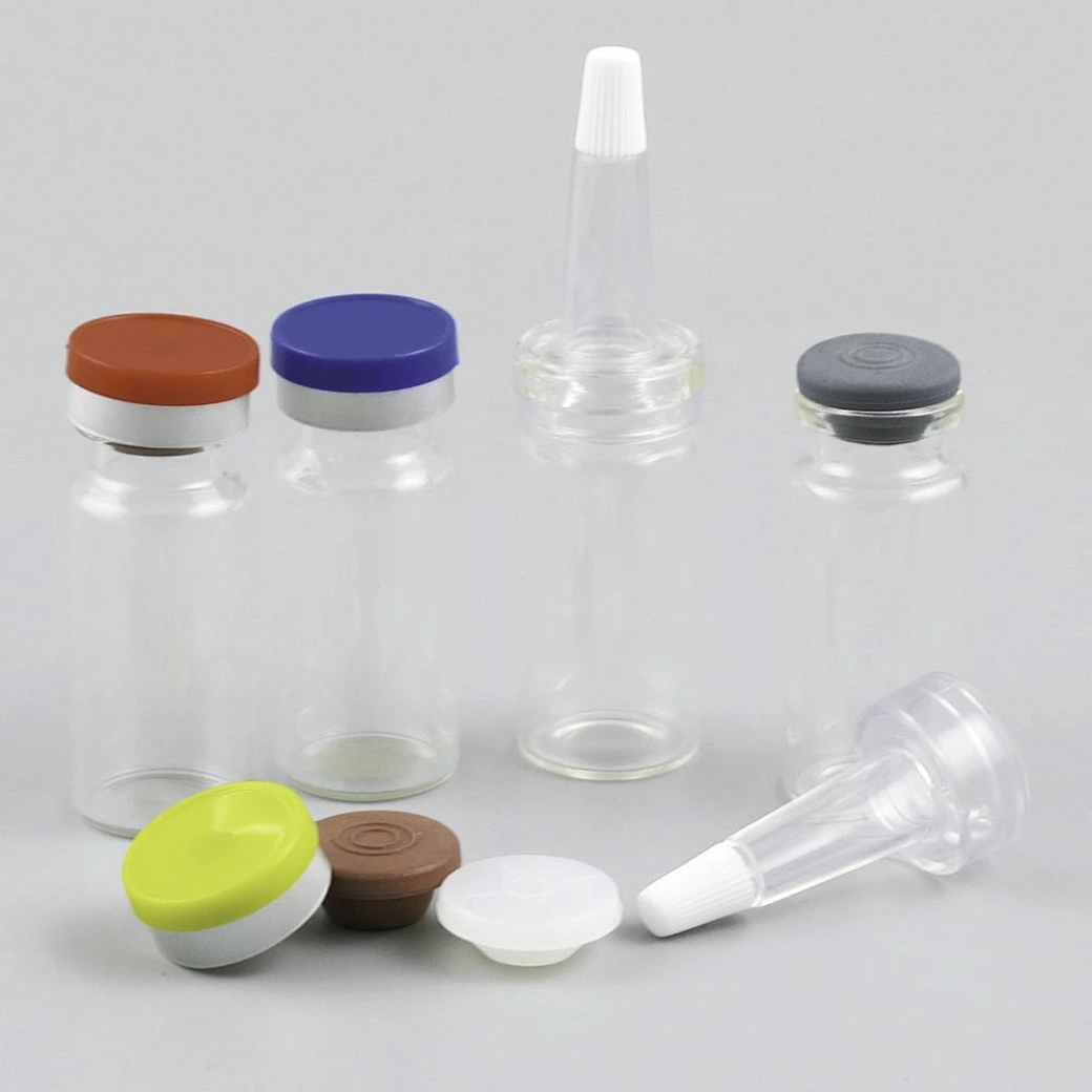 Empty clear glass vial with flip off caps & rubber stoppers 10ml injection medical bottles