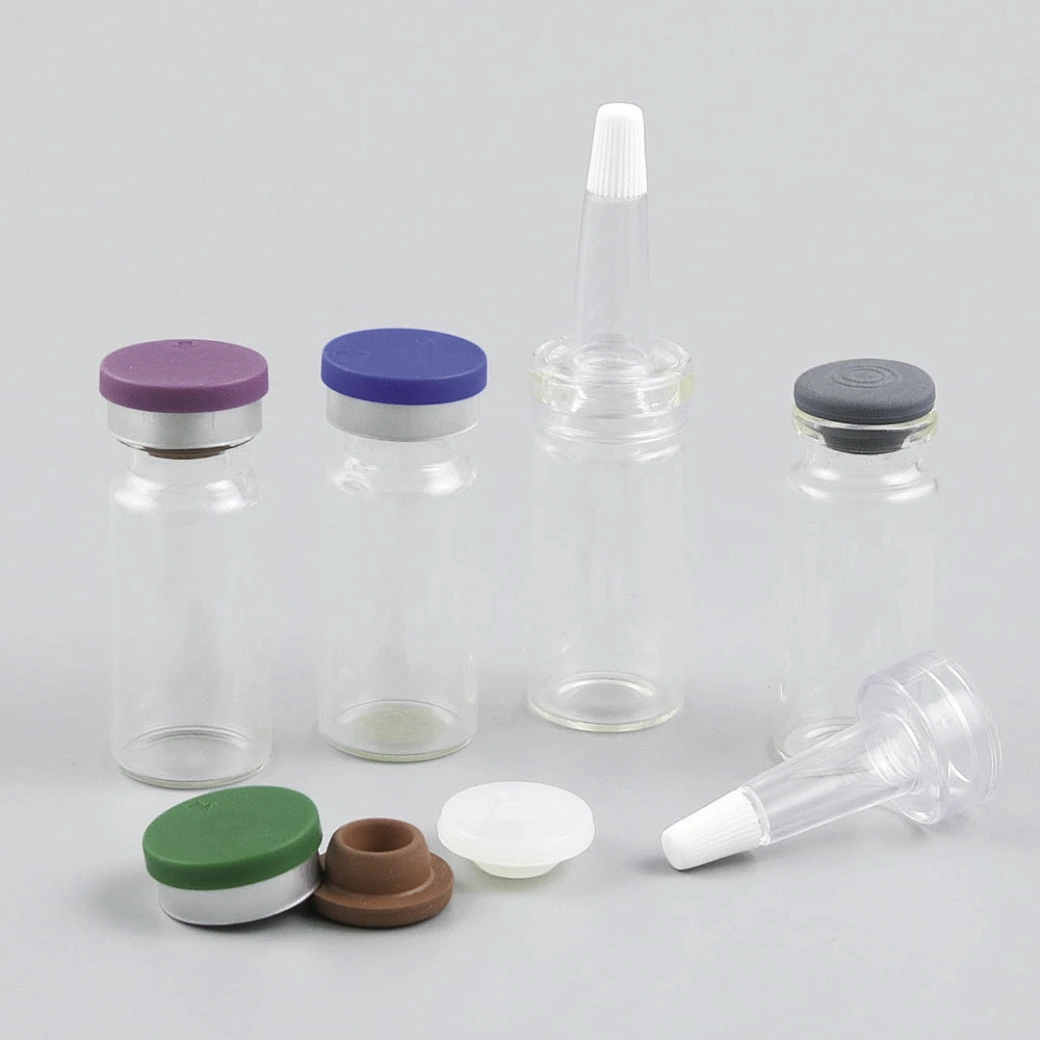 Empty clear glass vial with flip off caps & rubber stoppers 10ml injection medical bottles